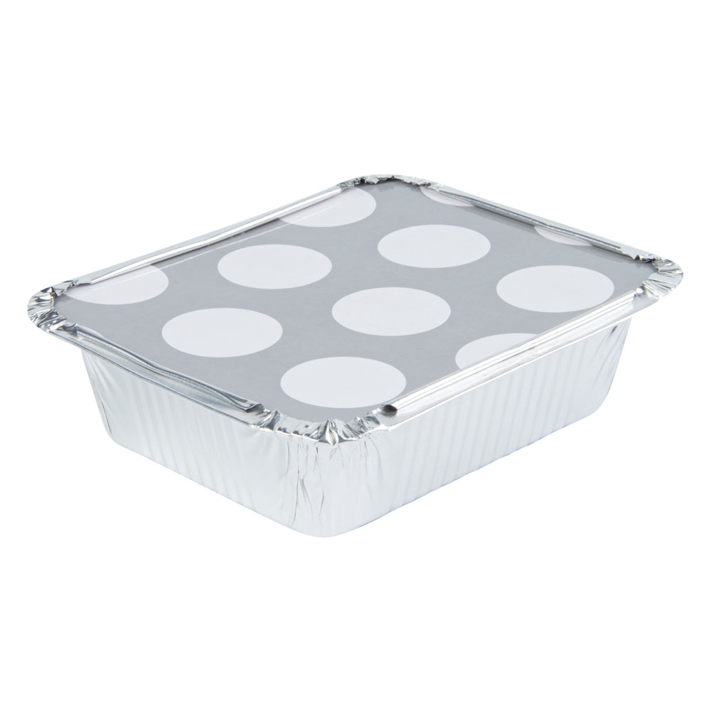 12 OZ SILVER ALUMINUM TAKE OUT CONTAINER - WITH POLKA DOT PAPER LID