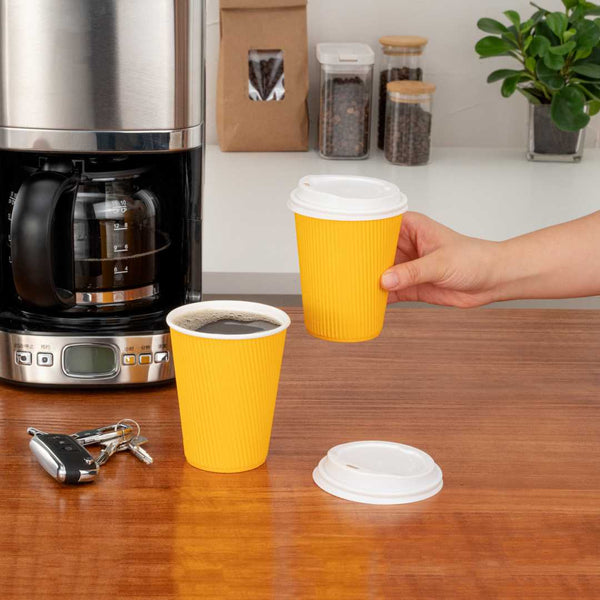 12 OZ YELLOW PAPER COFFEE CUP - RIPPLE WALL