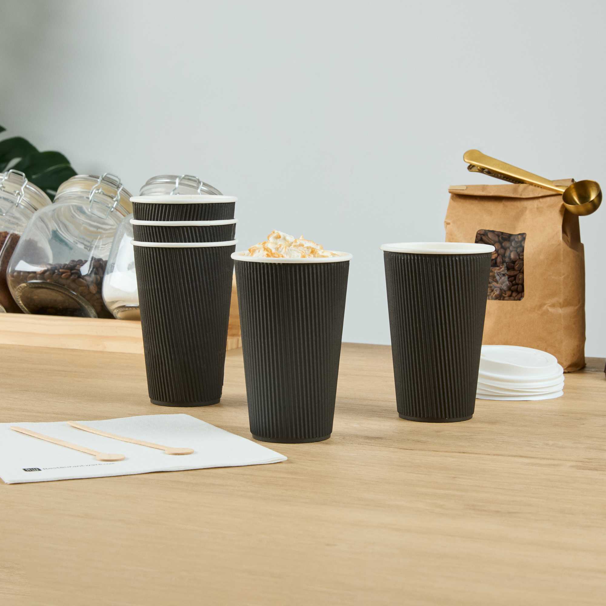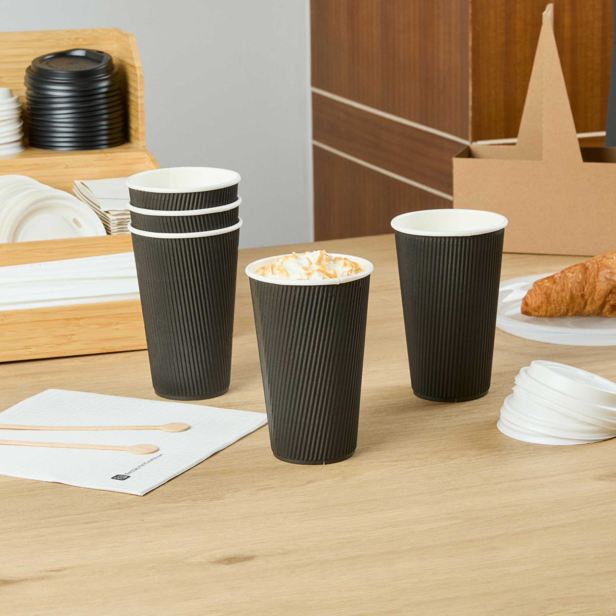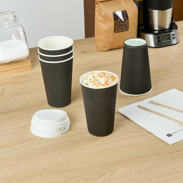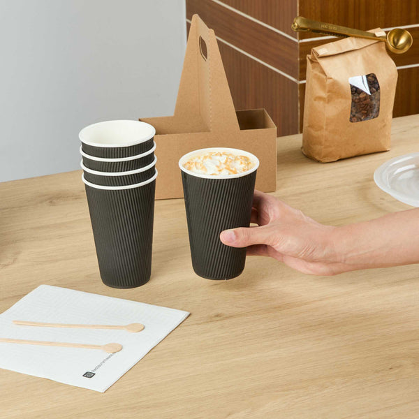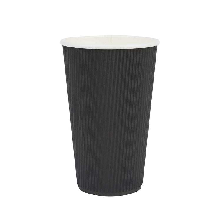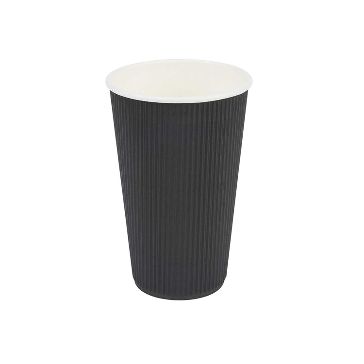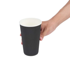 16 OZ BLACK PAPER COFFEE CUP - RIPPLE WALL