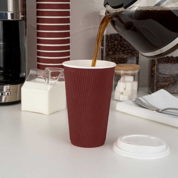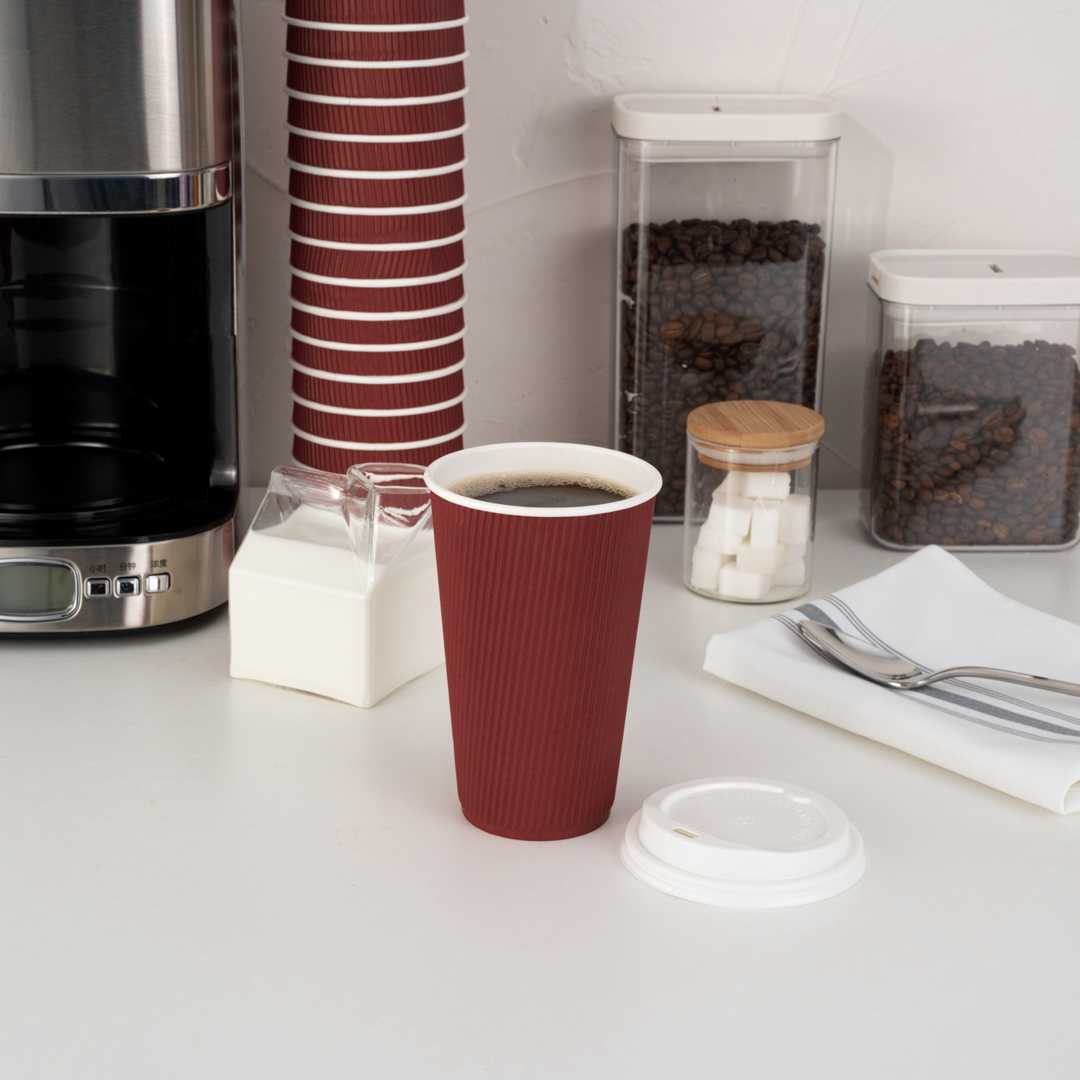 16 OZ CRIMSON PAPER COFFEE CUP - RIPPLE WALL