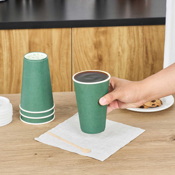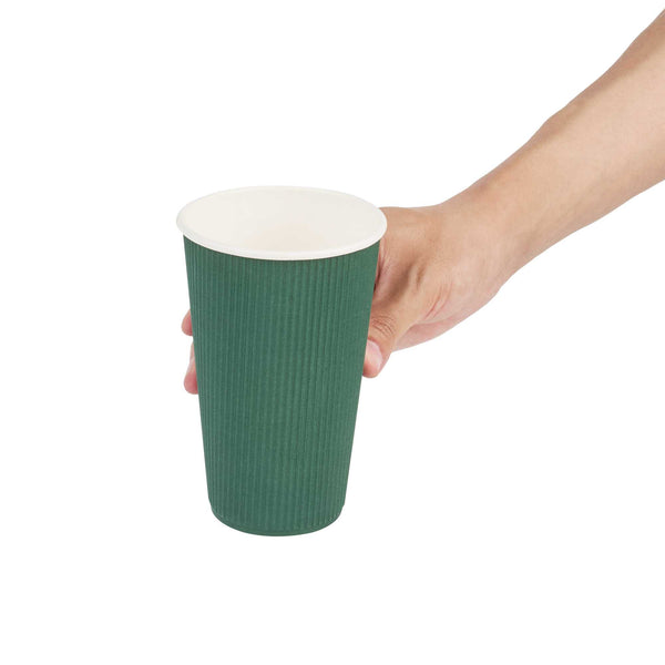 16 OZ FOREST GREEN PAPER COFFEE CUP - RIPPLE WALL