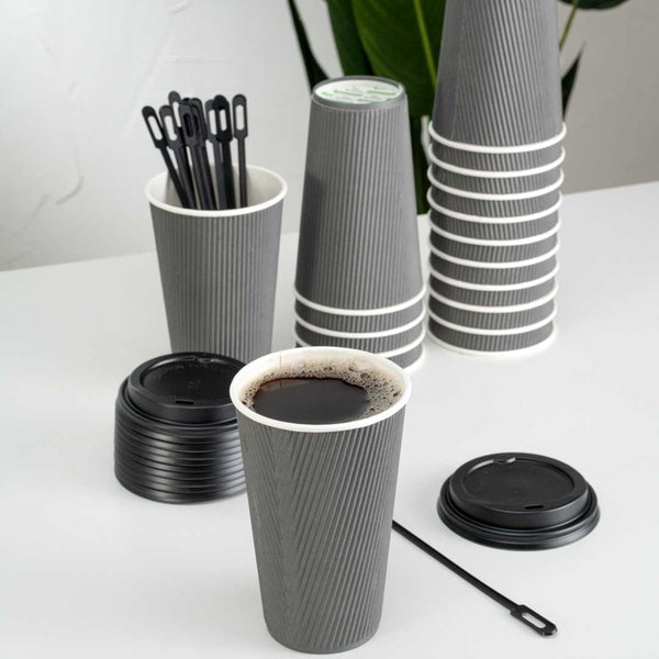 16 OZ GRAY PAPER COFFEE CUP - RIPPLE WALL