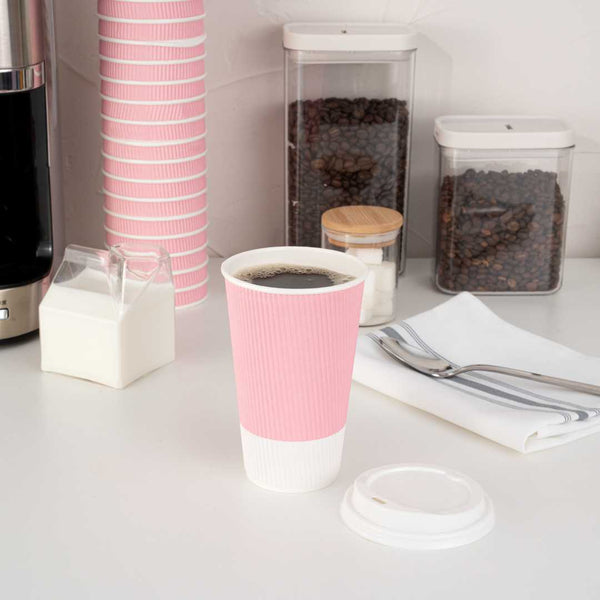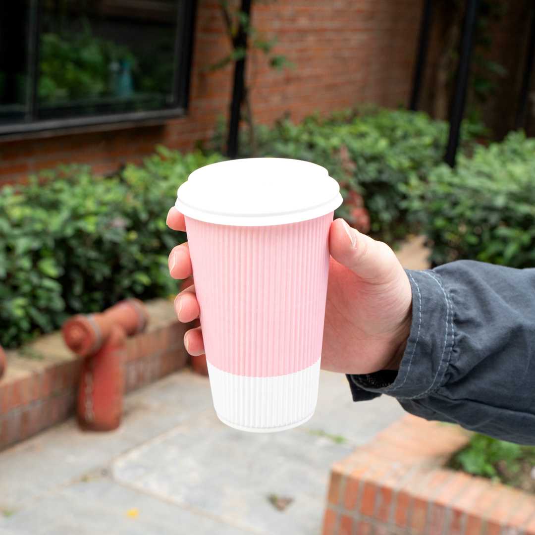 16 OZ LIGHT PINK PAPER COFFEE CUP - RIPPLE WALL