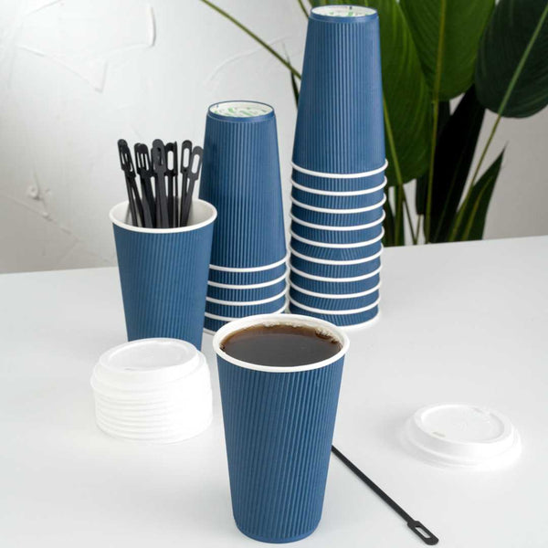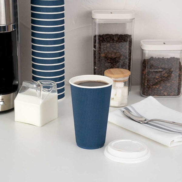 16 OZ MIDNIGHT BLUE PAPER COFFEE CUP - RIPPLE WALL