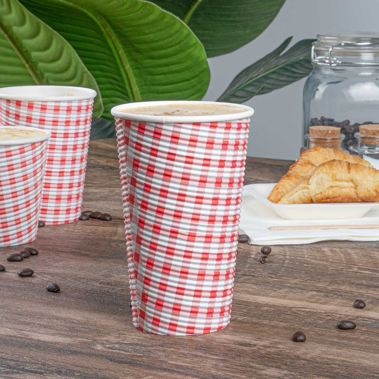 16 OZ PICNIC PRINT PAPER COFFEE CUP - SPIRAL WALL
