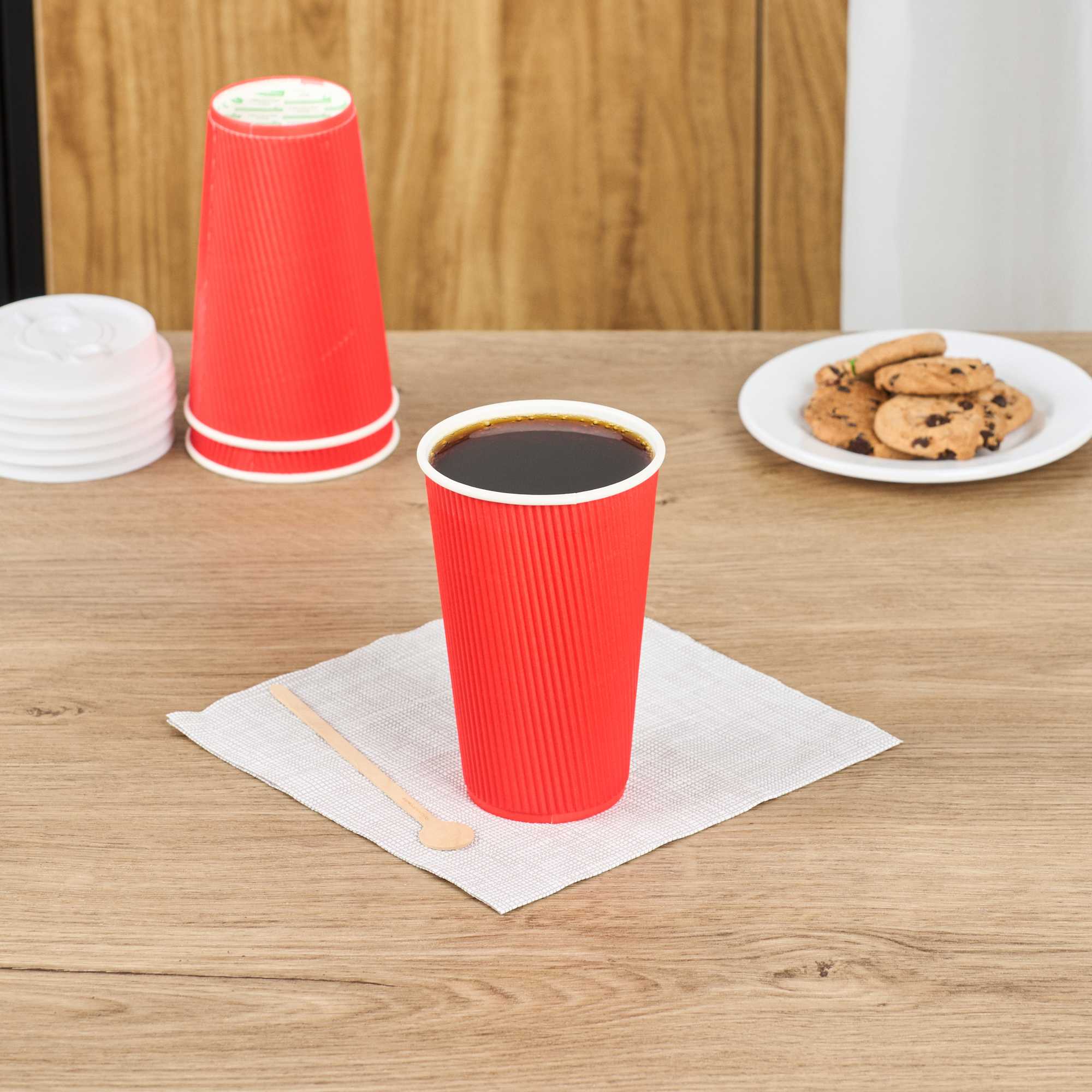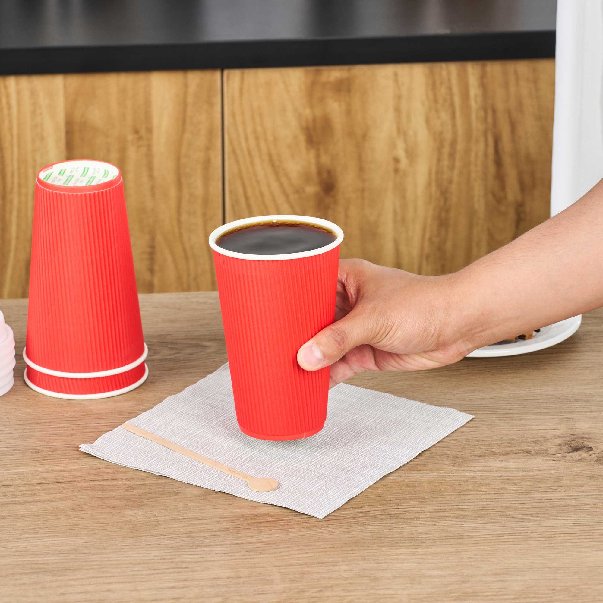 16 OZ RED PAPER COFFEE CUP - RIPPLE WALL