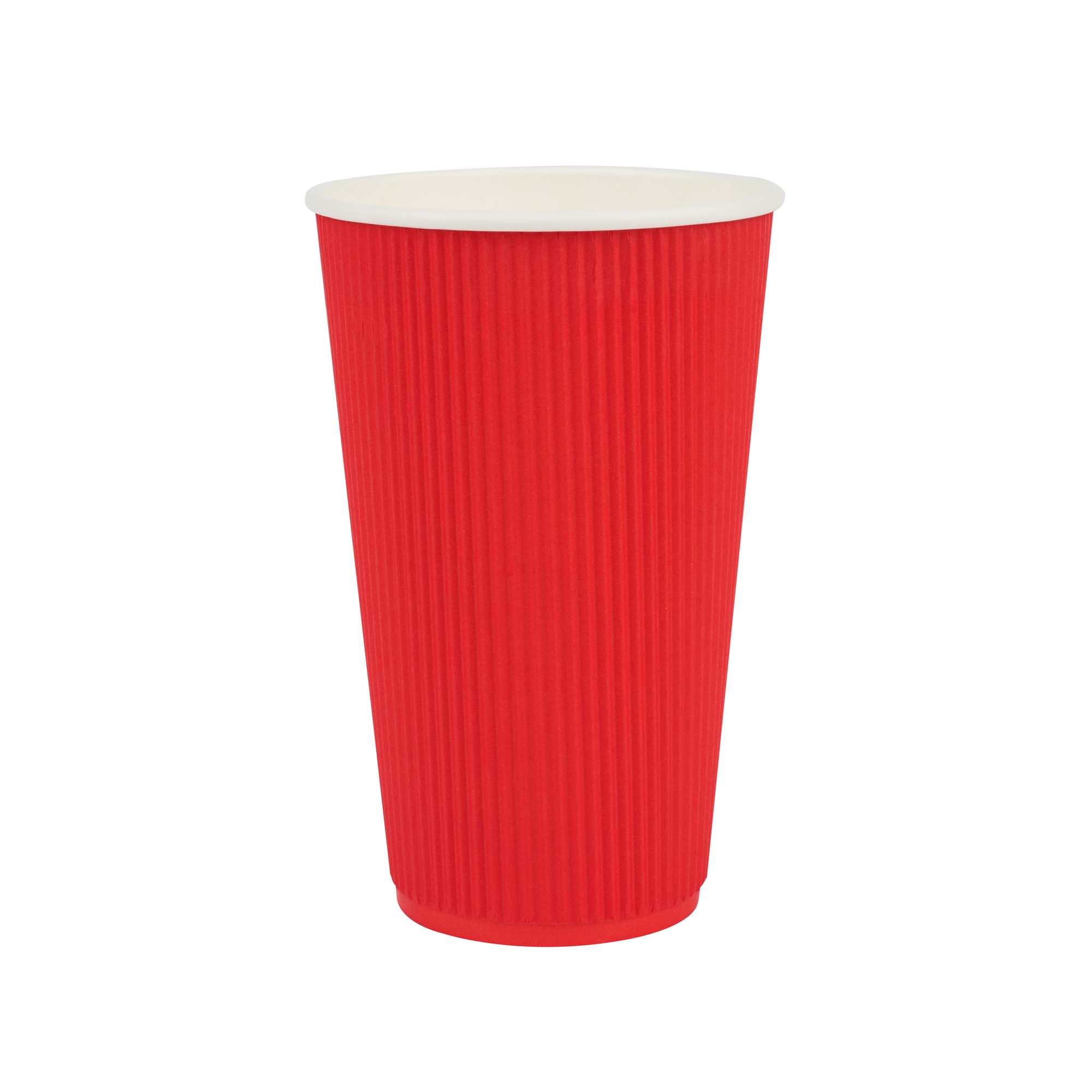 16 OZ RED PAPER COFFEE CUP - RIPPLE WALL