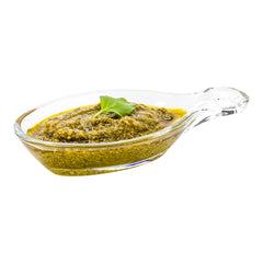 2 OZ GLASS LEAF MINI TASTING DISH - ETCHED, WITH HANDLE