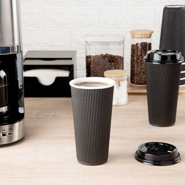 20 OZ BLACK PAPER COFFEE CUP - RIPPLE WALL