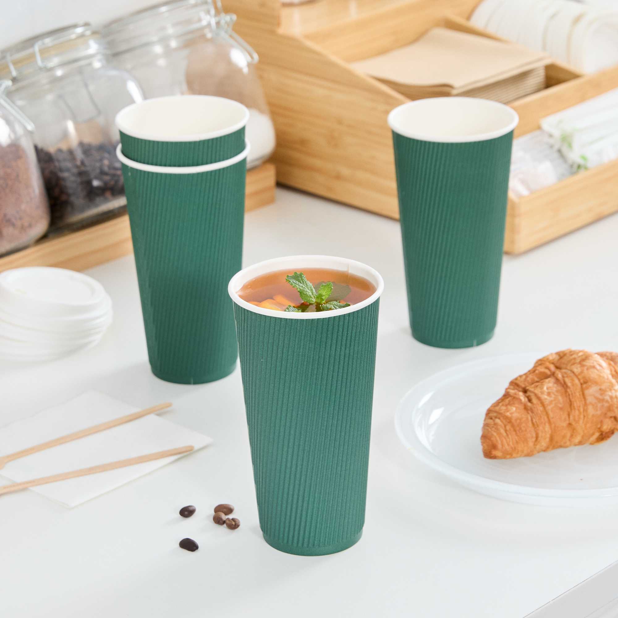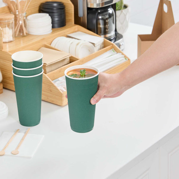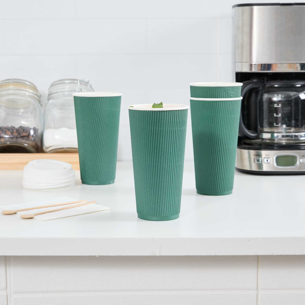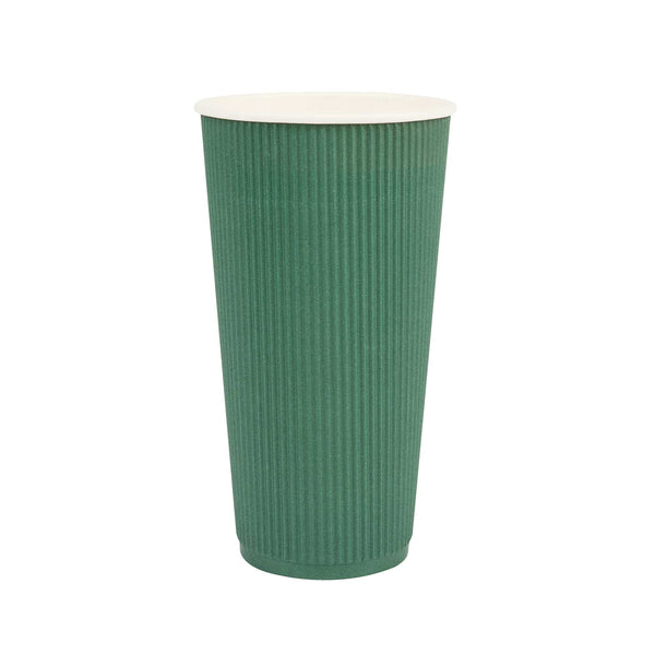 20 OZ FOREST GREEN PAPER COFFEE CUP - RIPPLE WALL