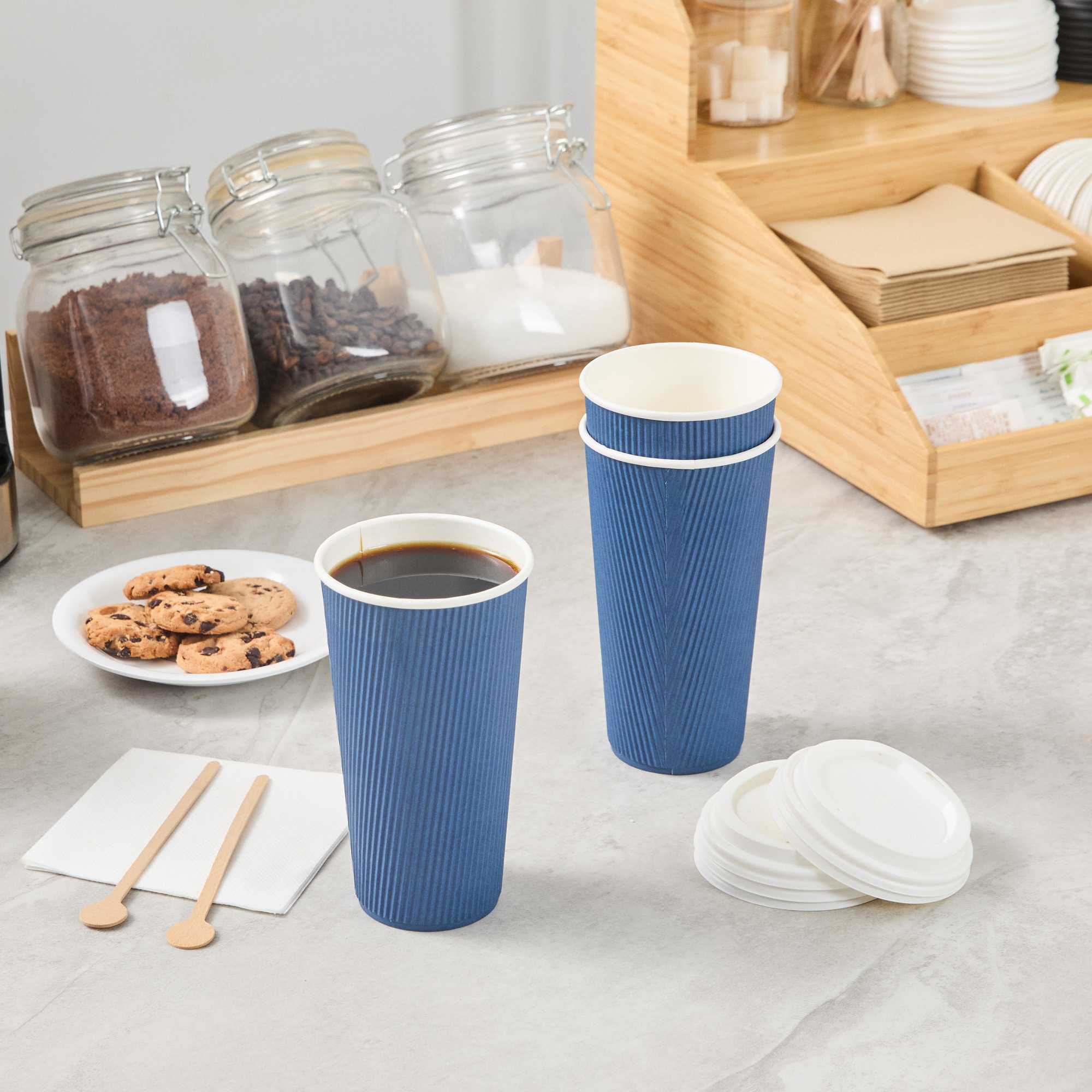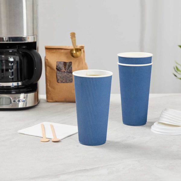 20 OZ MIDNIGHT BLUE PAPER COFFEE CUP - RIPPLE WALL
