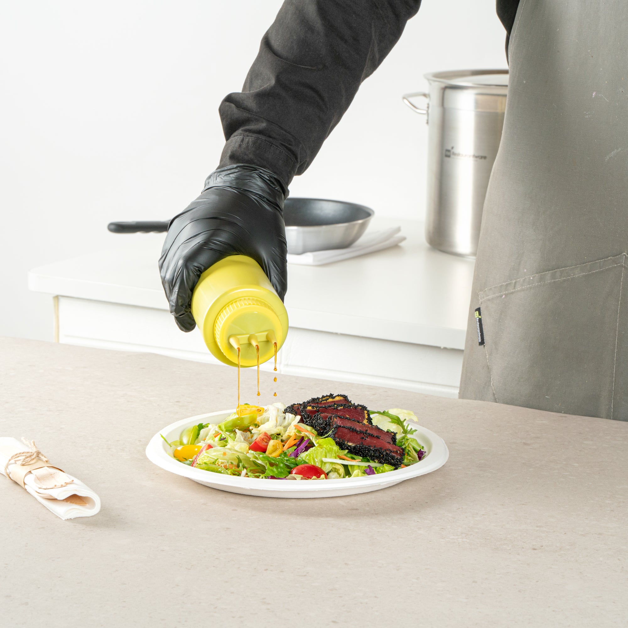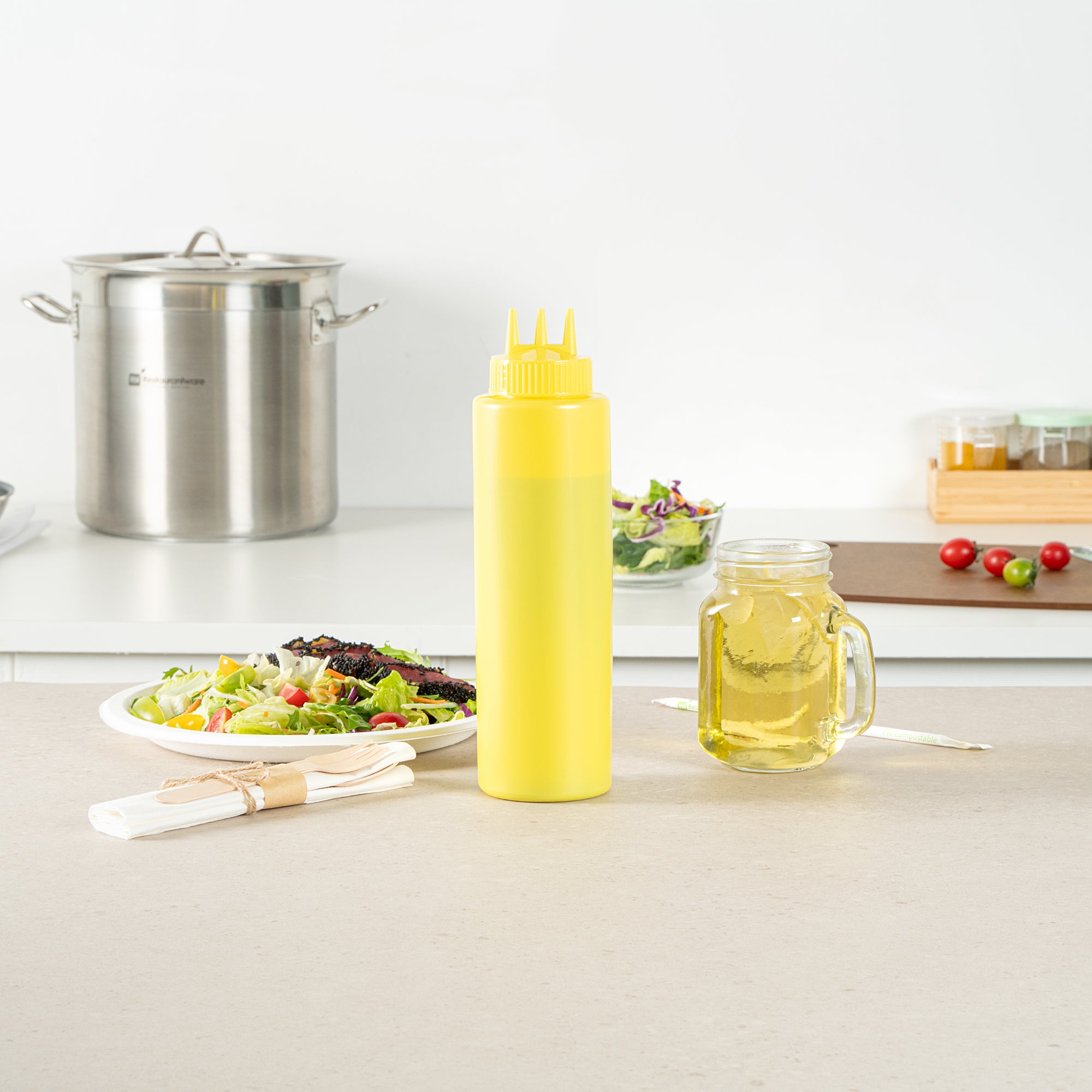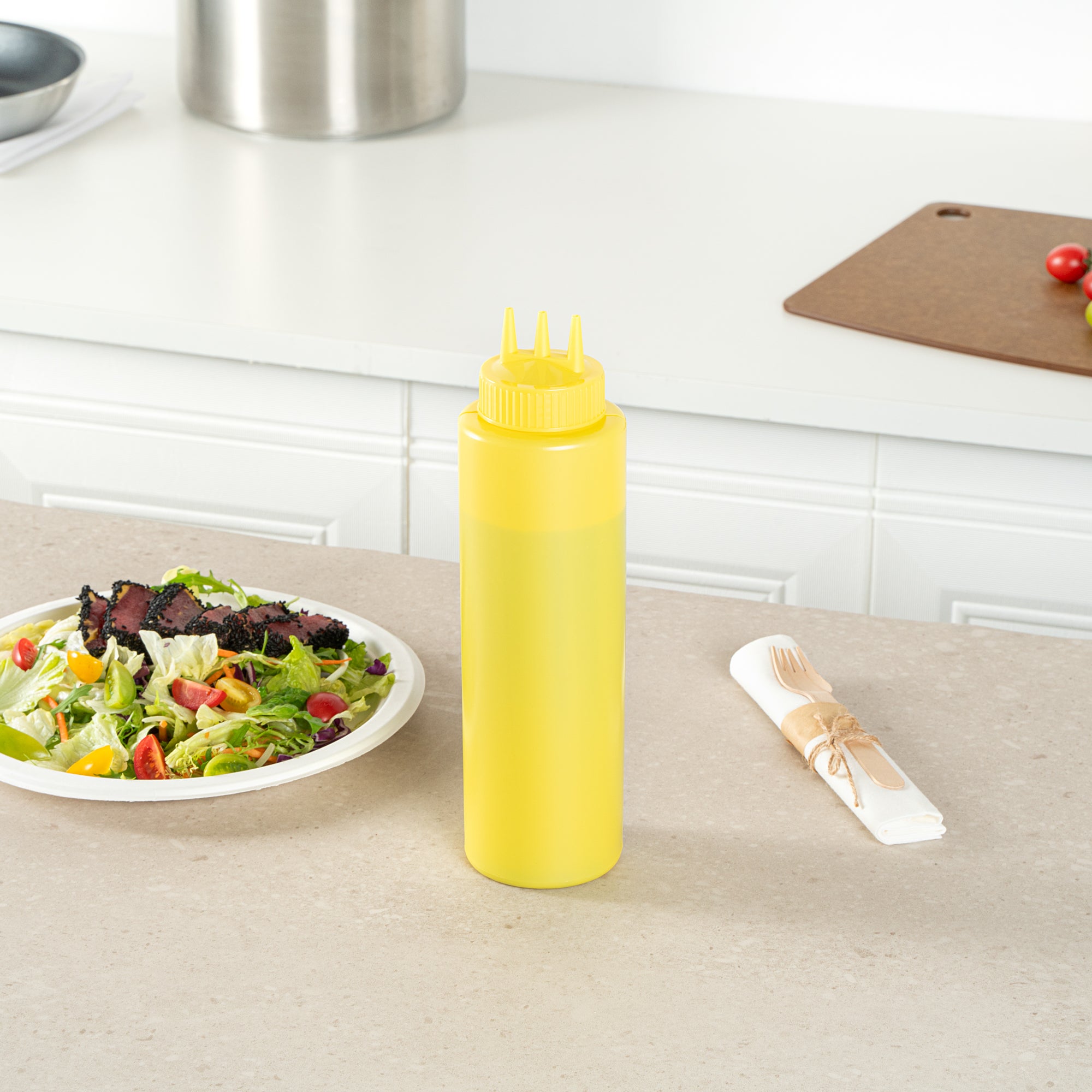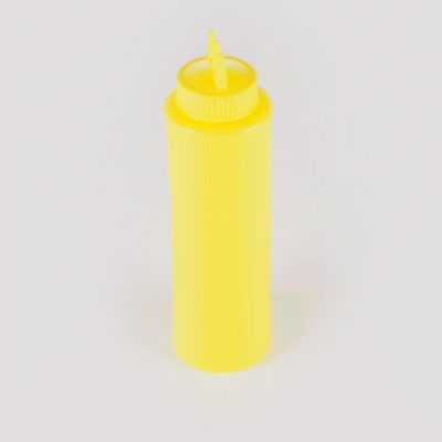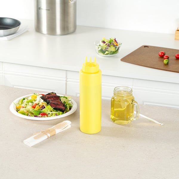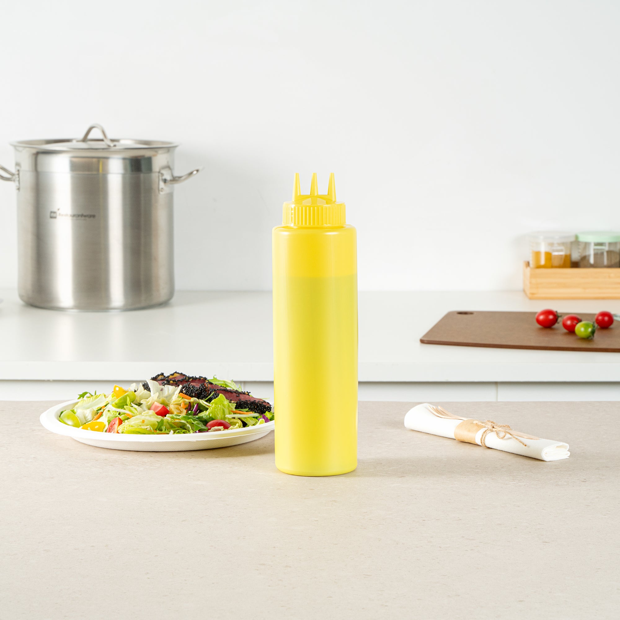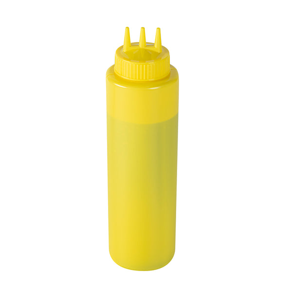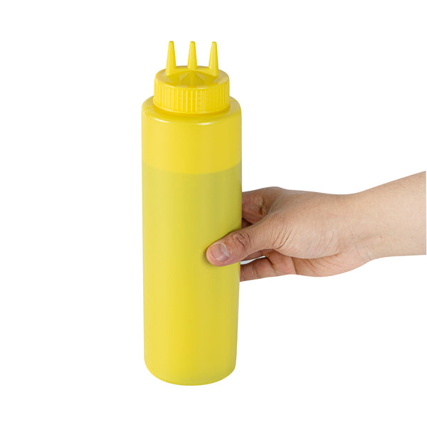 32 OZ YELLOW PLASTIC MUSTARD SQUEEZE BOTTLE-WITH TRIPLE DISPERSION TIP