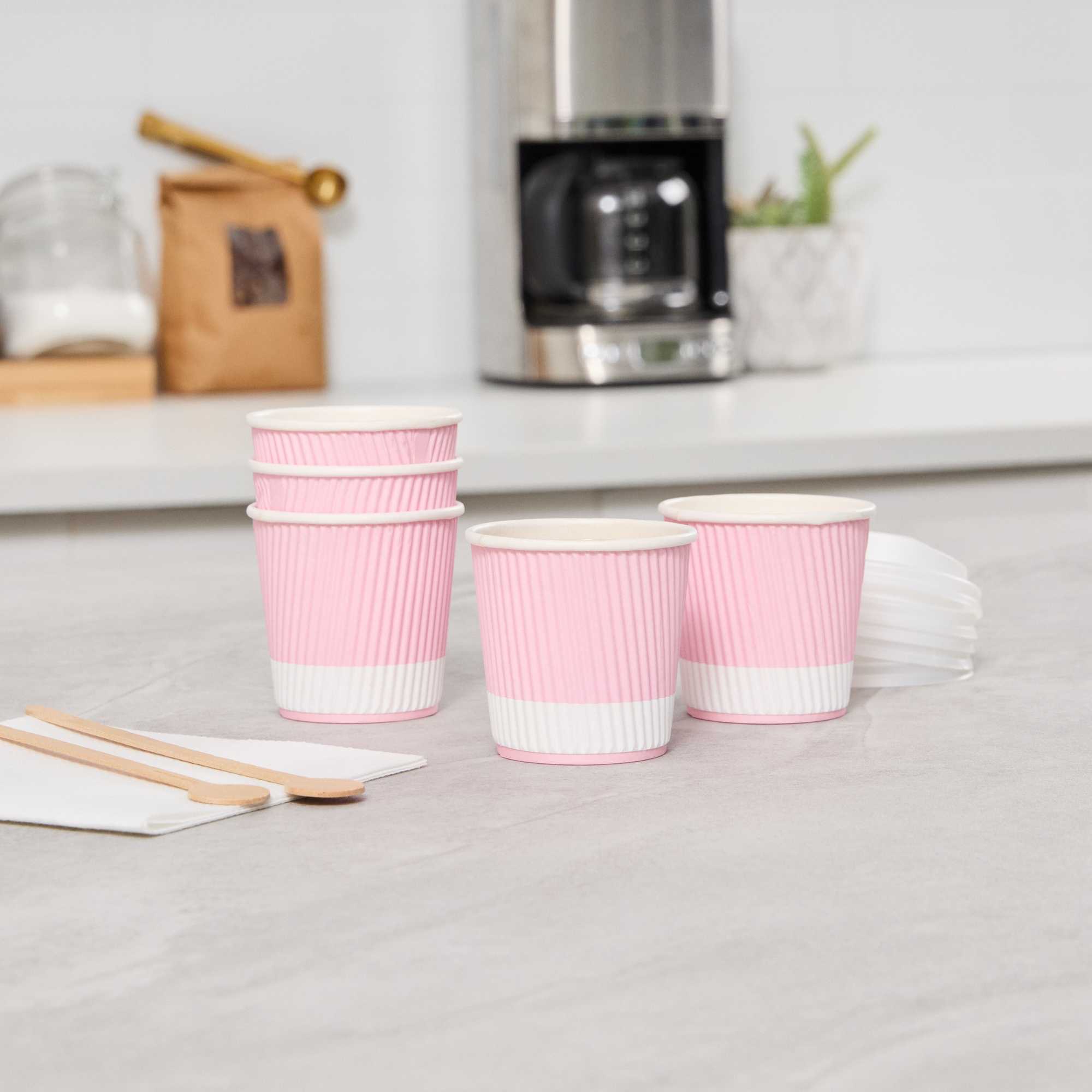 4 OZ LIGHT PINK PAPER COFFEE CUP - RIPPLE WALL