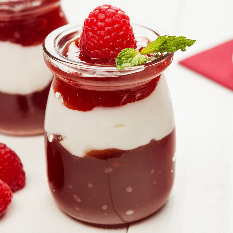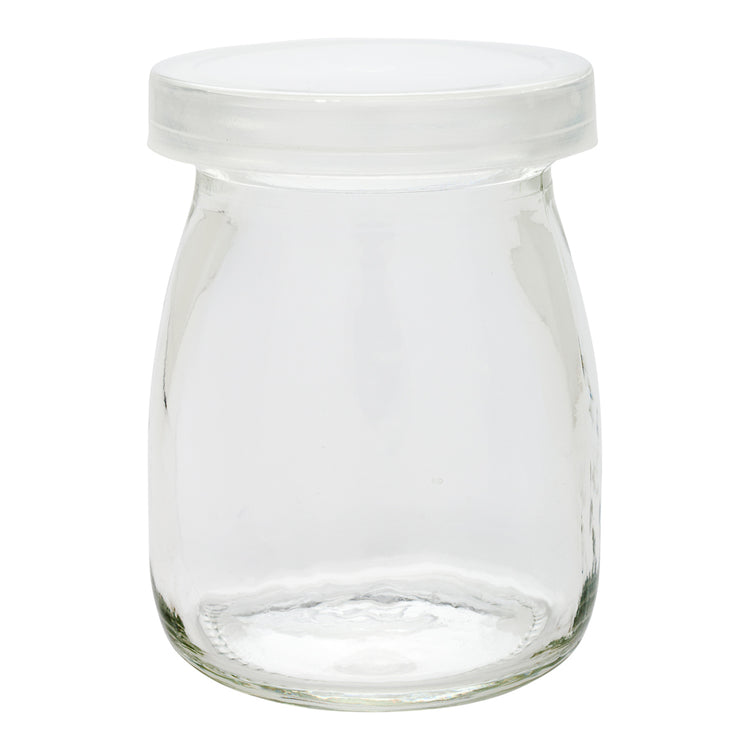 Our Nostalgic Milk and Yogurt Glass Jars with lids are ideal for showcasing and serving mini desserts, puddings, parfaits, and more! These reusable small glass jars are 2.91" tall and have a capacity of 3.5 ounces, so they're a great size for packaging small party favors, snacks, and sweets. Plus, our Vetri jars come with reusable plastic caps, so you can use them as homemade yogurt jars or to easily store homemade baby food. Bring a rustic and nostalgic touch to your catered events, parties, and weddings with these charming glass jars. These 3.5-ounce glass jars are available for bulk purchase in 100 count boxes.
