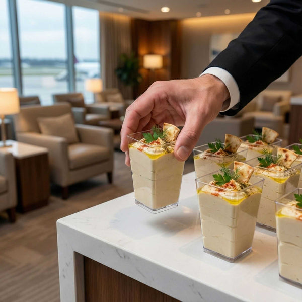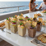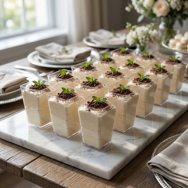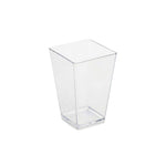 Create attention-grabbing appetizer and dessert displays with these crystal clear Tall Medium Kova Cups. Featuring a geometric square shape and an elongated open-top design, these mini plastic dessert cups add a modern twist to the presentation of any miniature hors d'oeuvres, tapas, or desserts. Each of these square dessert cups measures 2.9 inches tall and has a total capacity of 3.7 ounces -- perfect for serving decadent chocolate mousse, key lime panna cotta, or miniature strawberry shortcakes! Constructed from high-quality plastic, these 3.7 oz square dessert cups are conveniently disposable and recyclable. Ideal for restaurants and catering companies, we offer these wholesale mini dessert cups in a 40 count box.