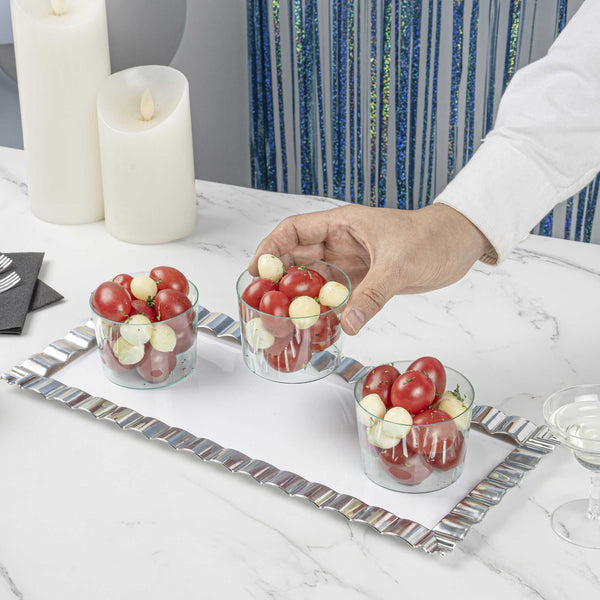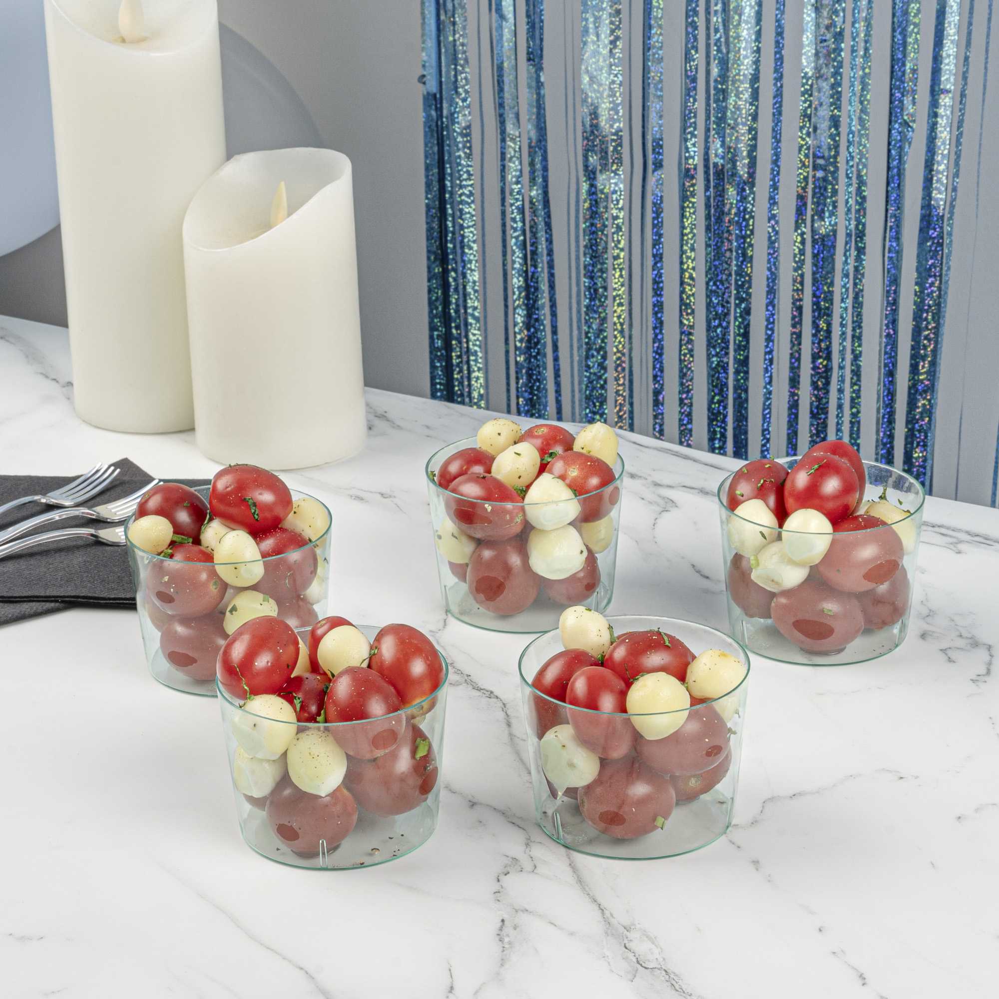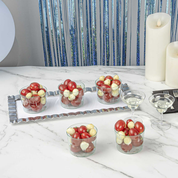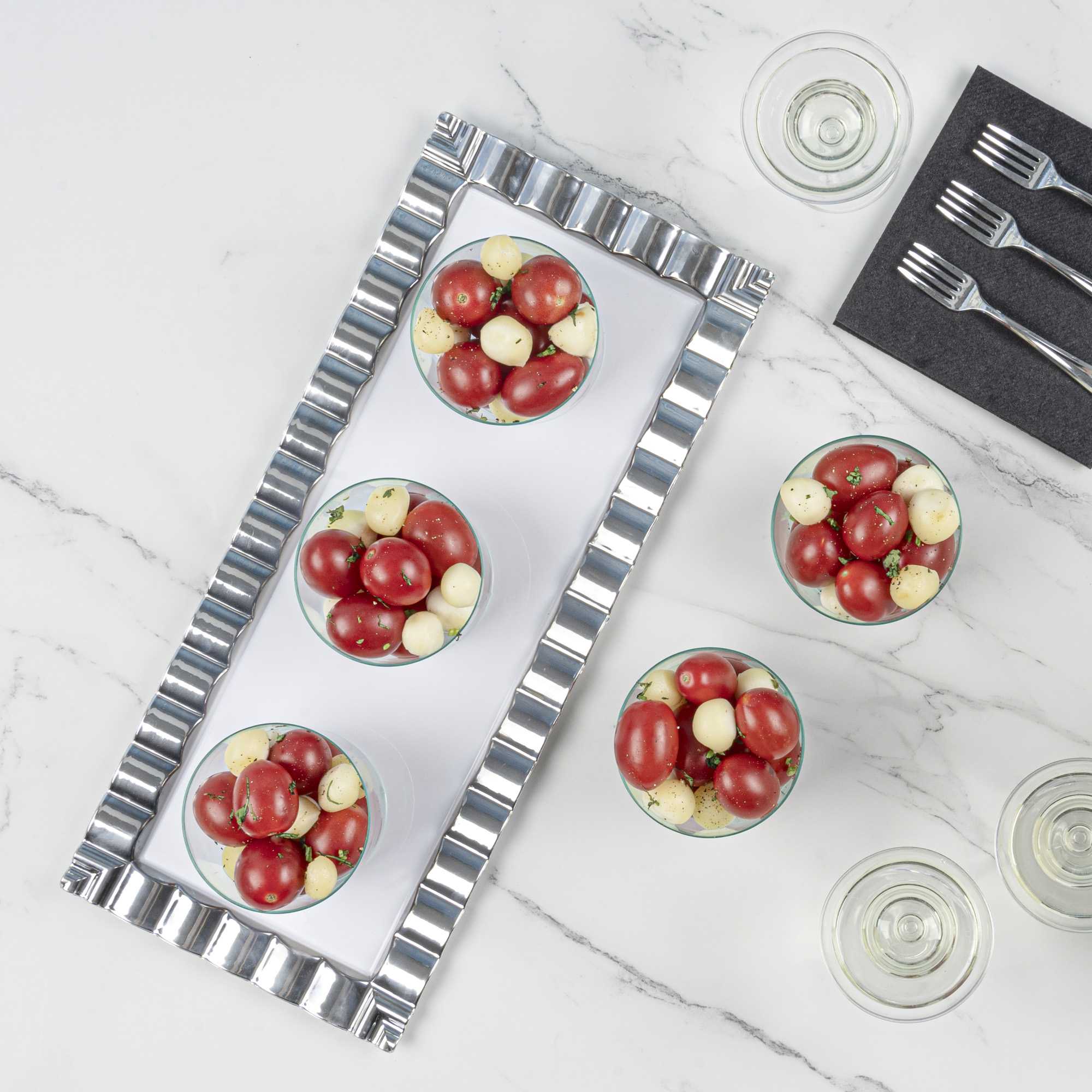 - Crystal clear finish beautifully showcases appetizers and desserts