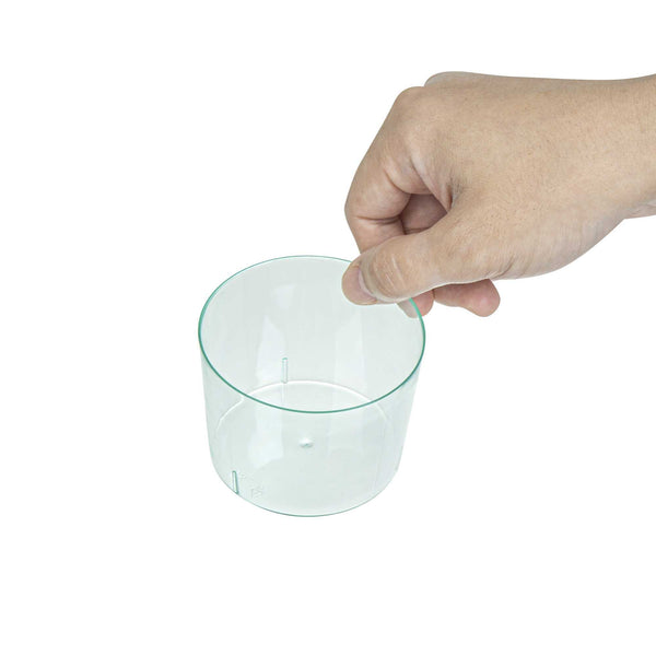 Perfectly plate miniature appetizers and desserts in our contemporary 6-ounce Round Seagreen Plastic Cylindro Cups. Featuring a translucent sea green-tinted finish, these disposable tasting cups are designed to beautifully showcase your delectable treats and dazzle your guests. These dessert cups are crafted from premium plastic and are durable. With a capacity of 6 ounces, these serving cups ensure you have ample space to present and enjoy your favorite snacks. These round plastic cups are disposable to simplify your post-meal cleanup. Measuring 2.25 inches in diameter by 3 inches in height, these parfait cups can hold up to 6 ounces. Shipped in a 10 count box.