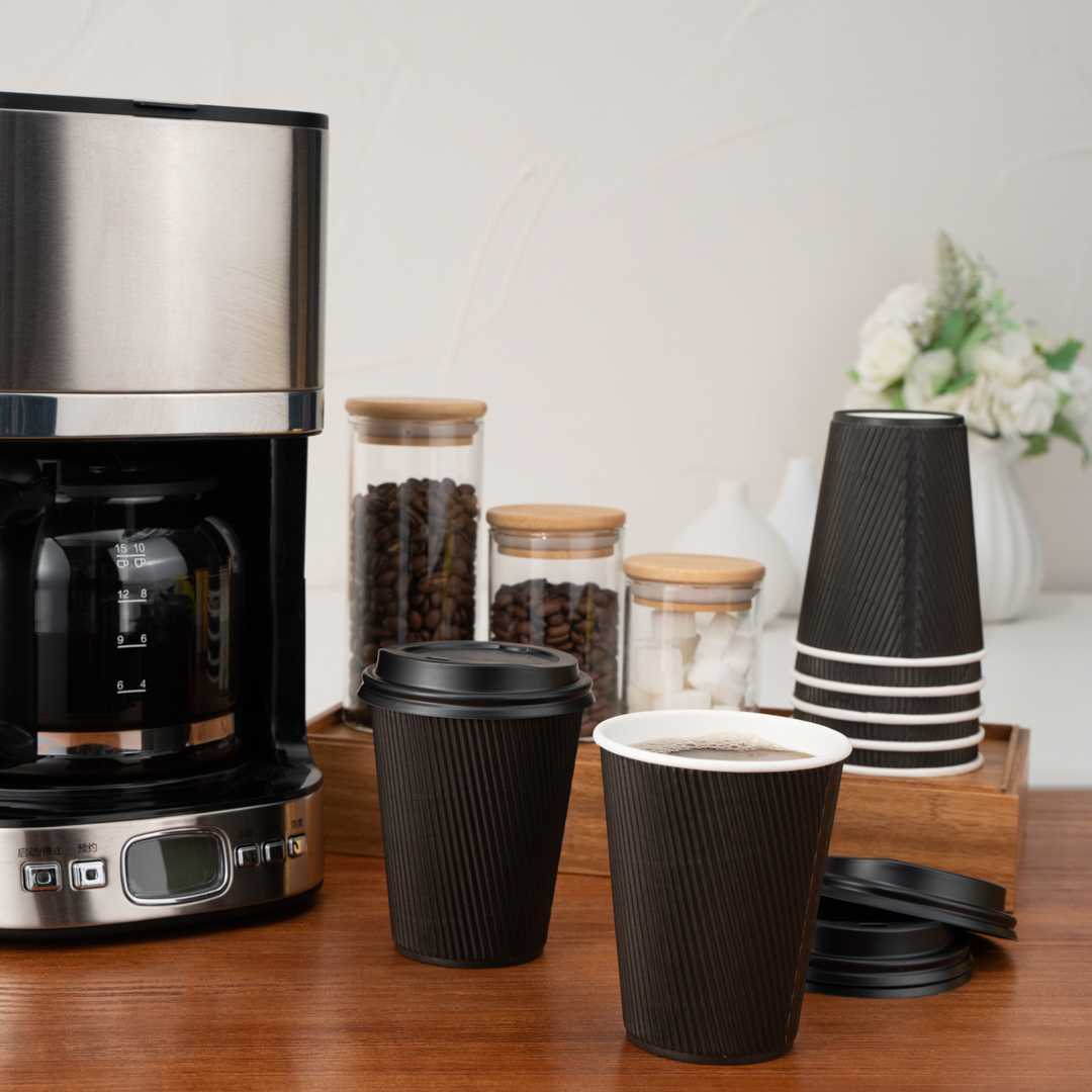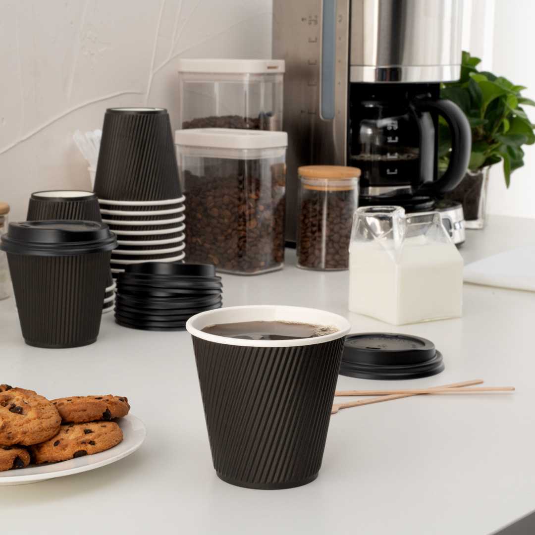 8 OZ BLACK PAPER COFFEE CUP - RIPPLE WALL