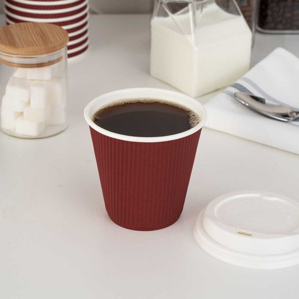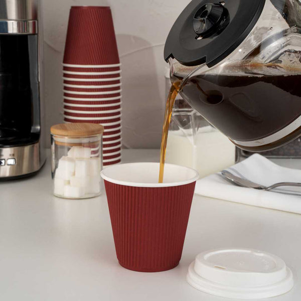 8 OZ CRIMSON PAPER COFFEE CUP - RIPPLE WALL