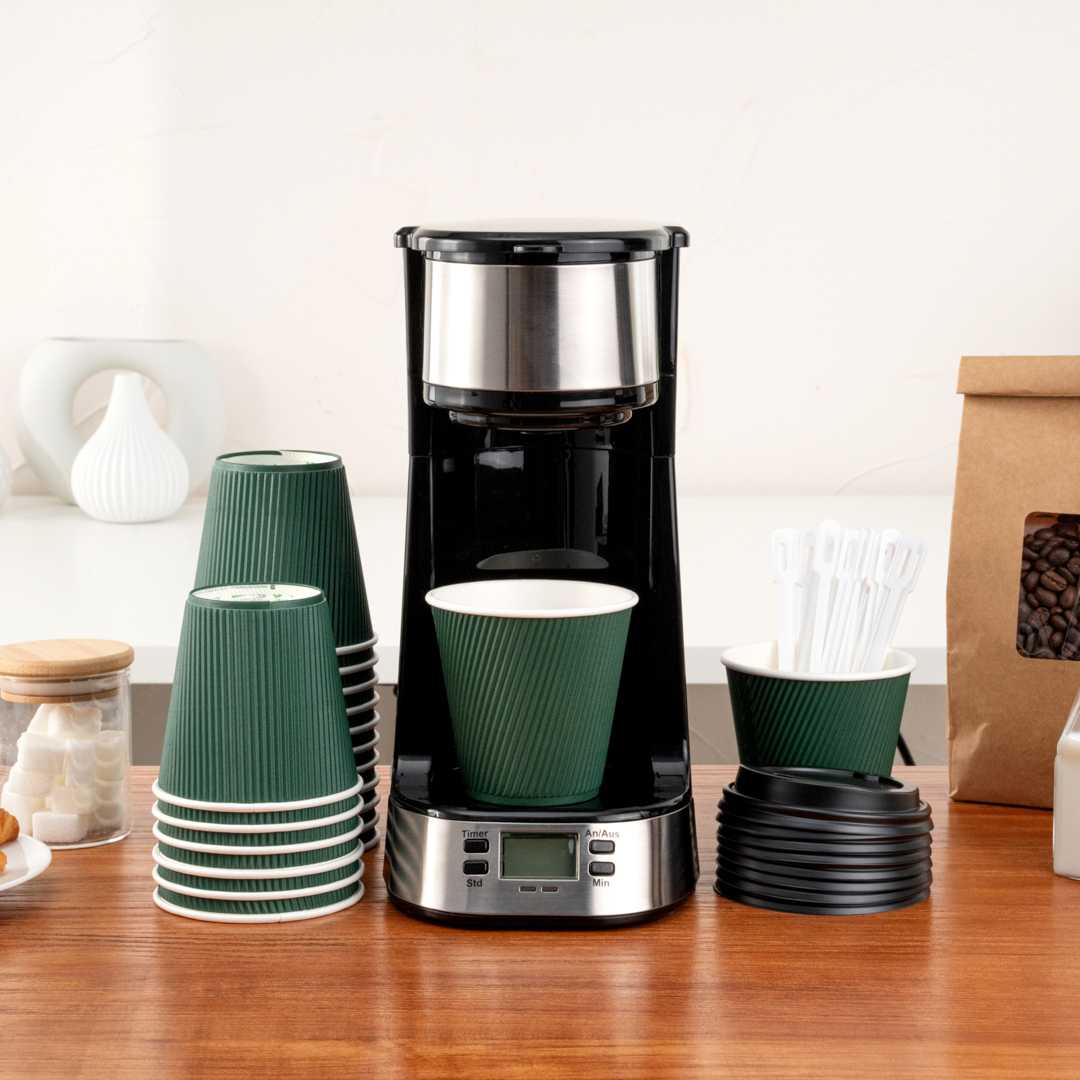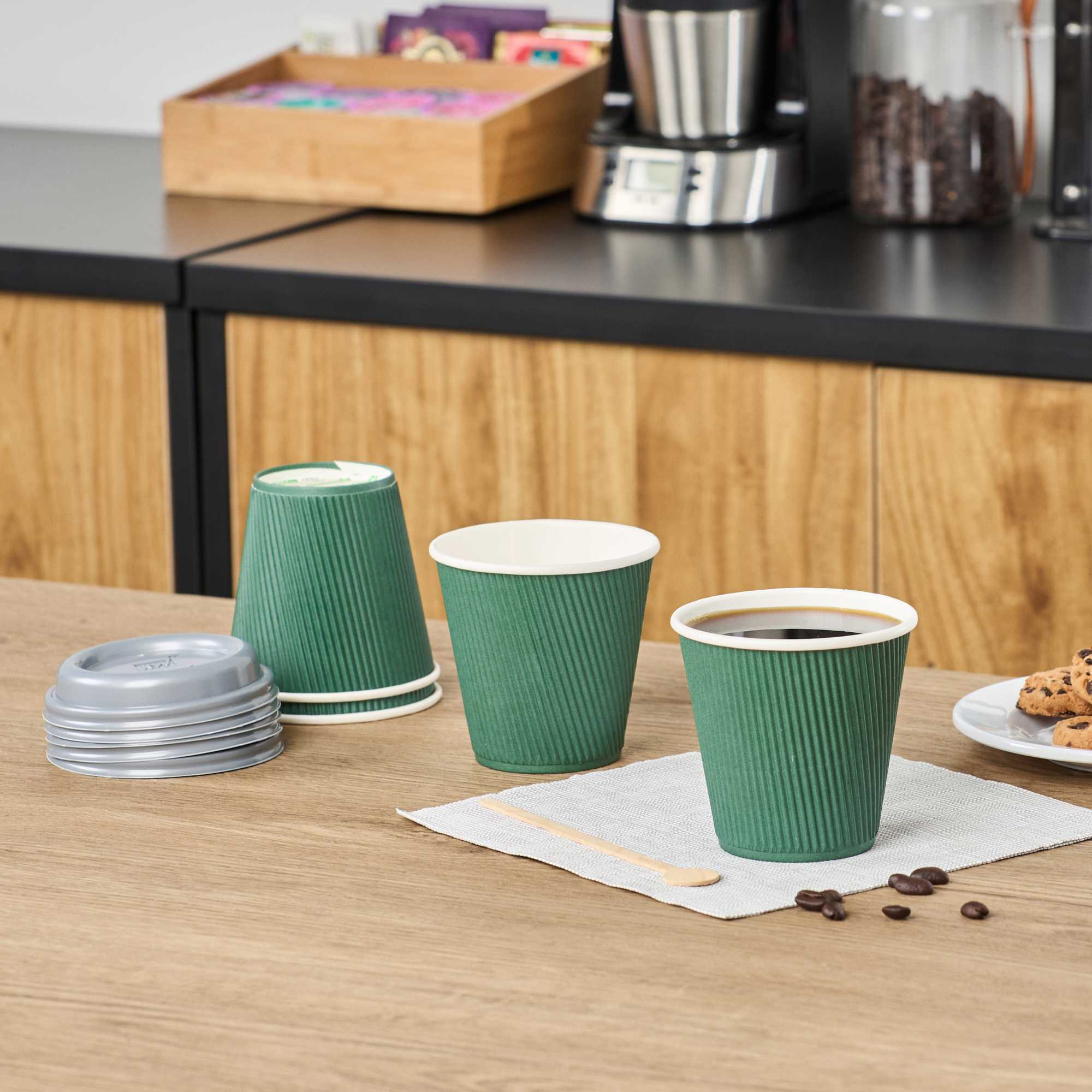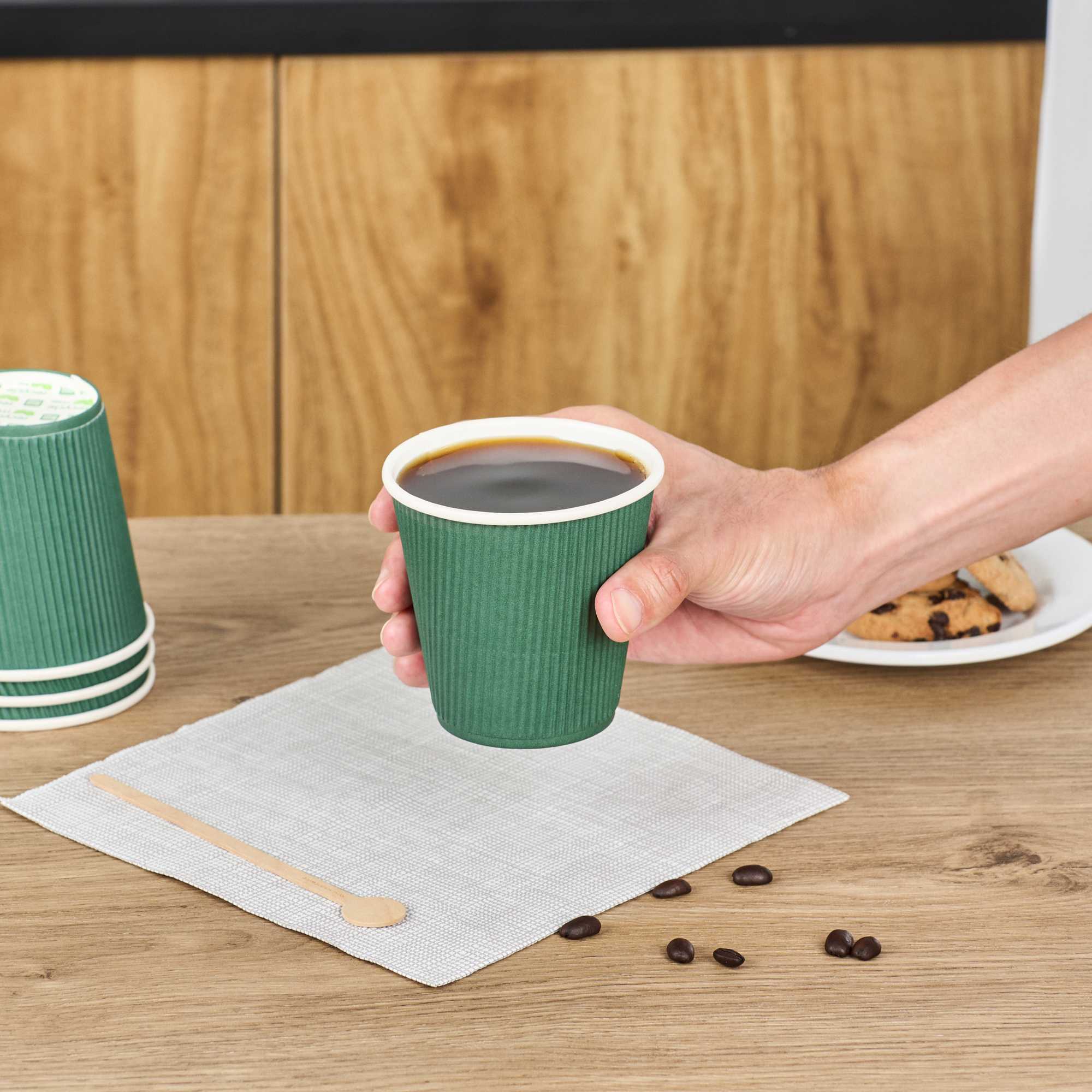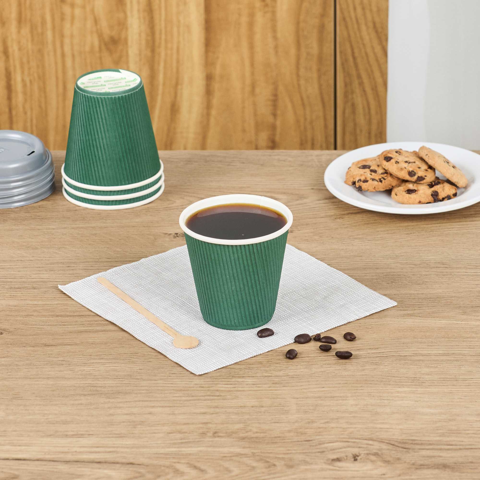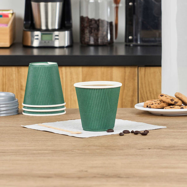 8 OZ FOREST GREEN PAPER COFFEE CUP - RIPPLE WALL