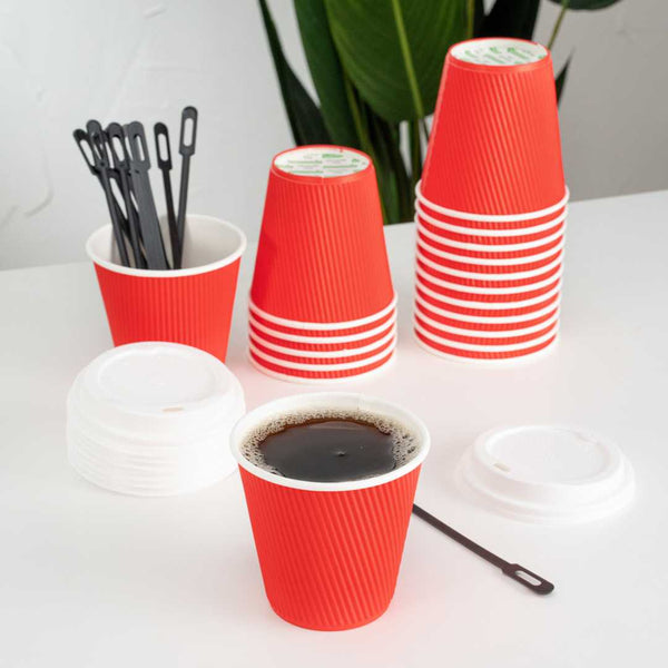 8 OZ RED PAPER COFFEE CUP - RIPPLE WALL