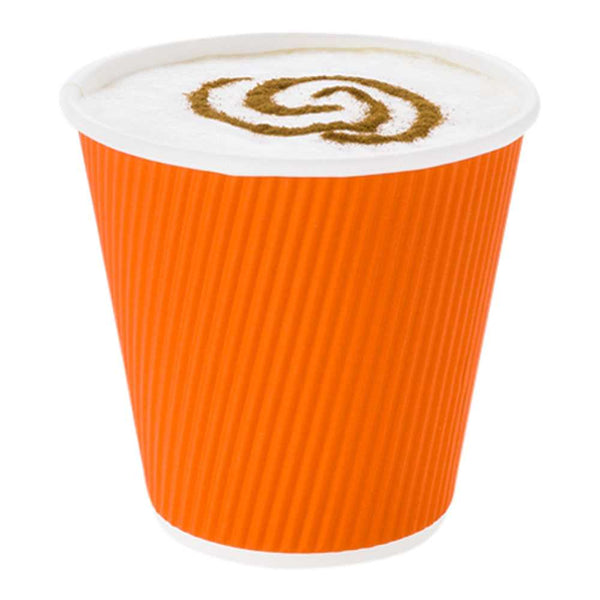 8 OZ TANGERINE ORANGE PAPER COFFEE CUP - RIPPLE WALL