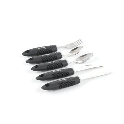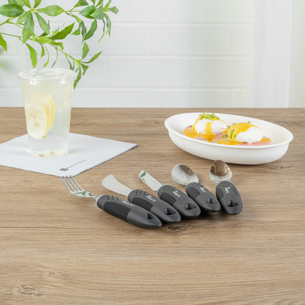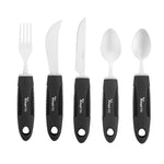 BLACK STAINLESS STEEL 5-PIECE ADAPTIVE UTENSIL SET - LIGHTWEIGHT