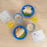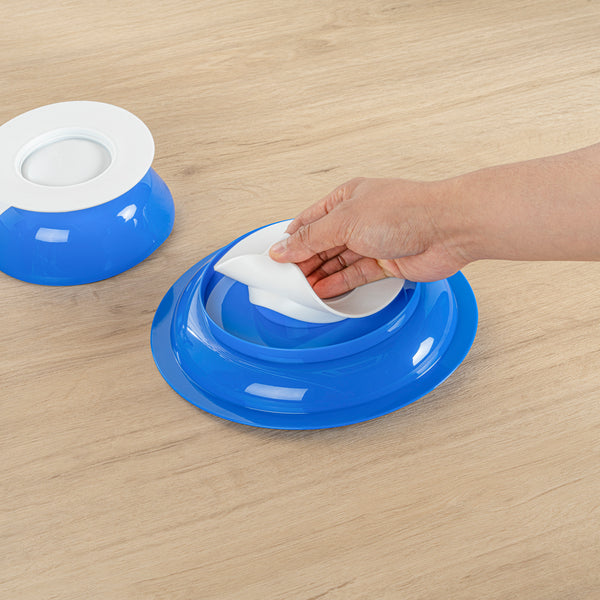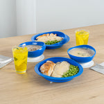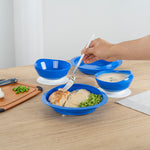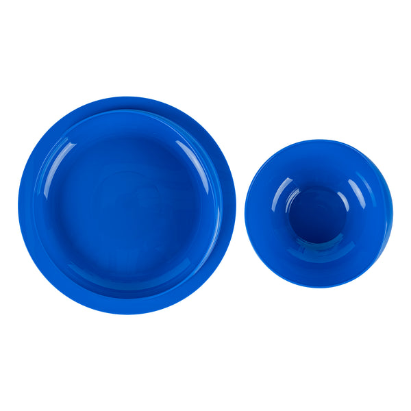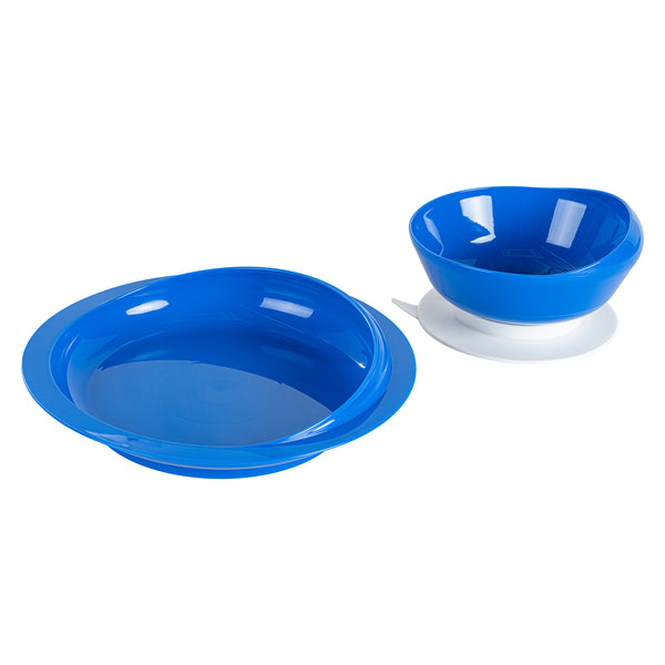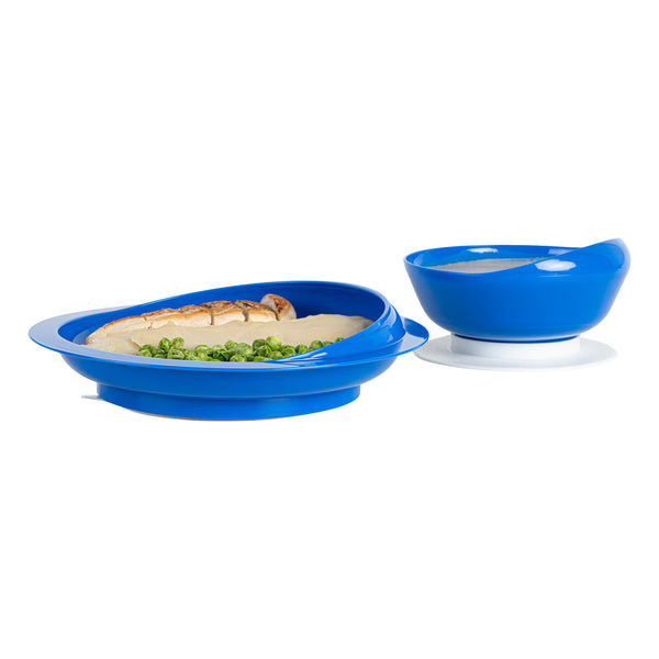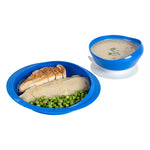 BLUE PLASTIC 2-PIECE SCOOP PLATE AND BOWL SET - SPILLPROOF