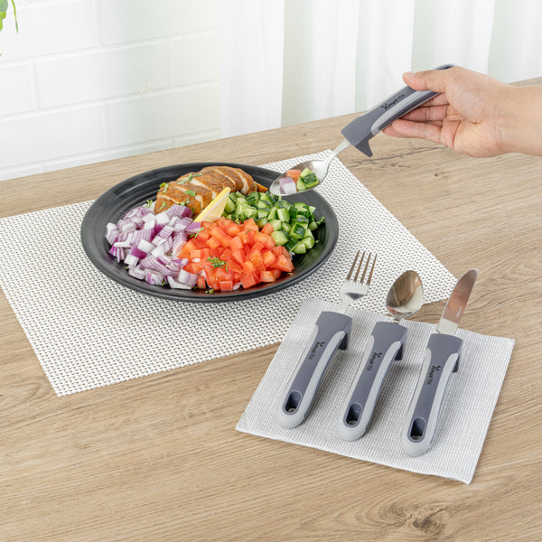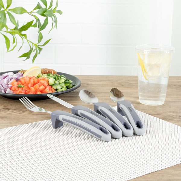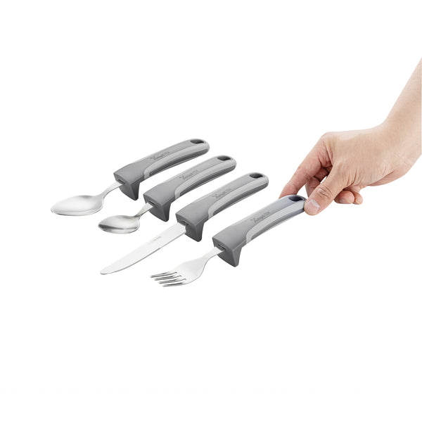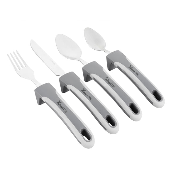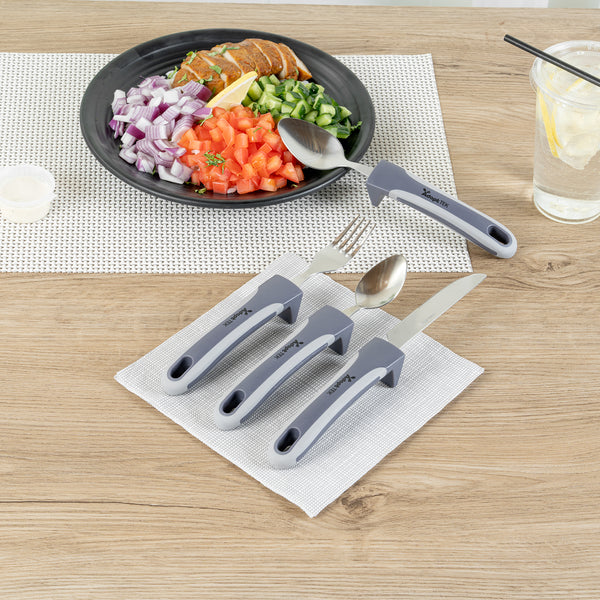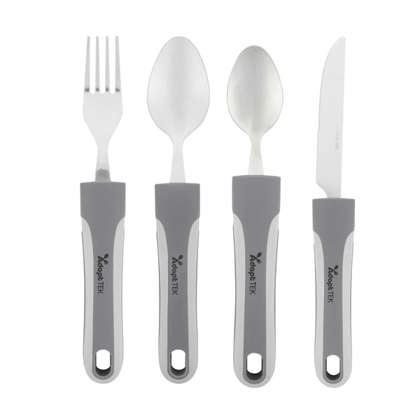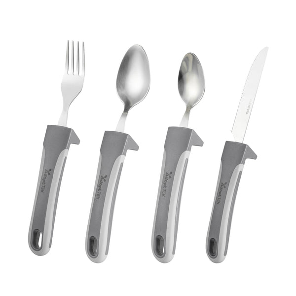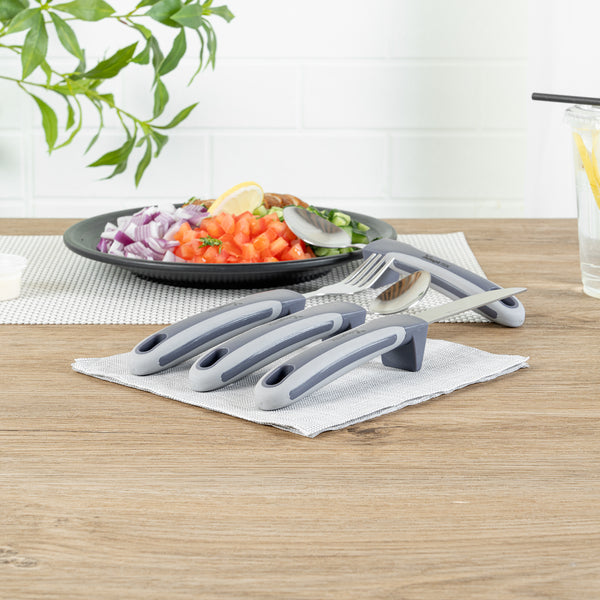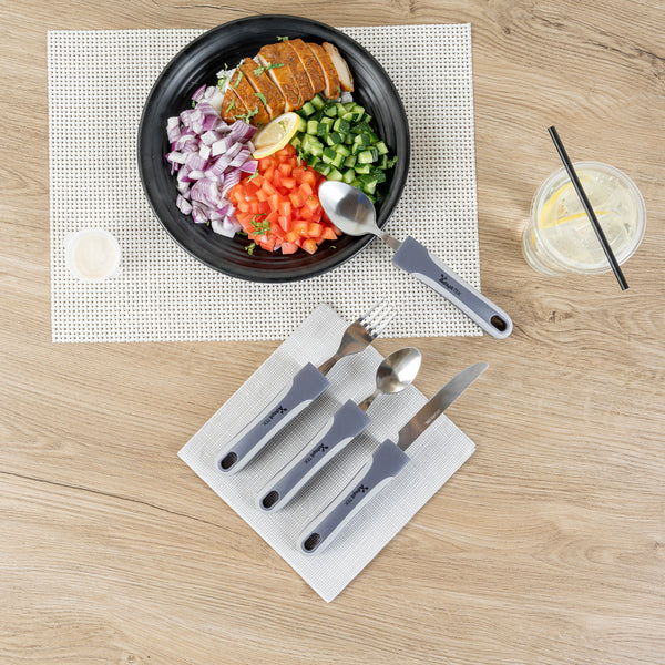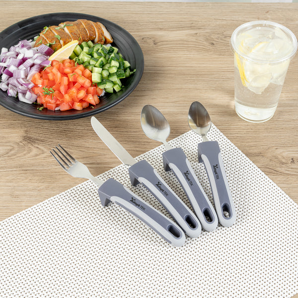 GRAY STAINLESS STEEL 4-PIECE ADAPTIVE UTENSIL SET - LIGHTWEIGHT