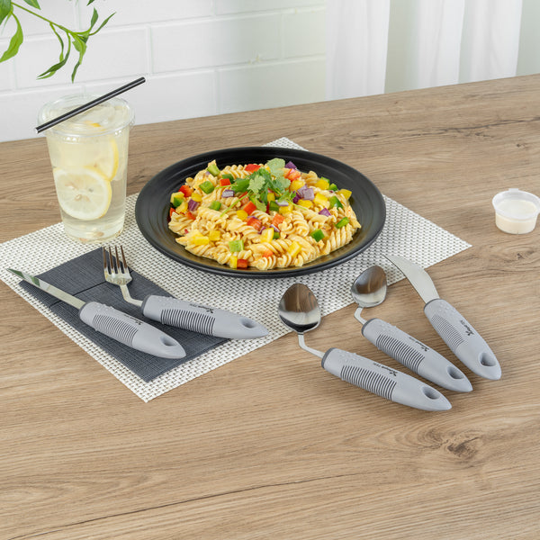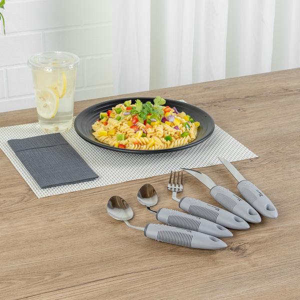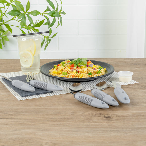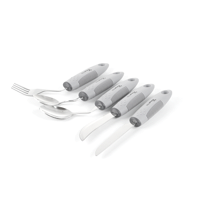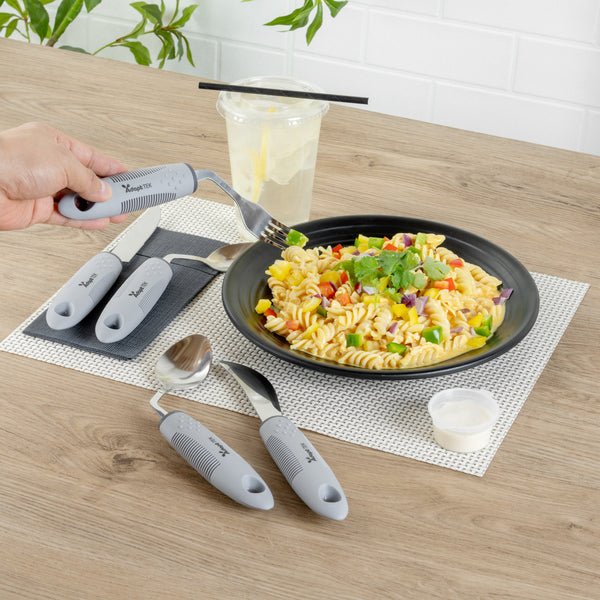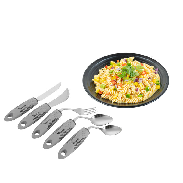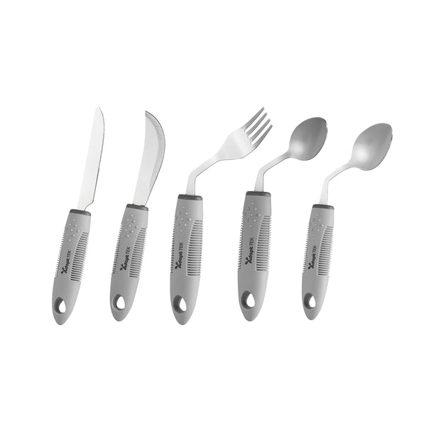 GRAY STAINLESS STEEL 5-PIECE ADAPTIVE OFFSET UTENSIL SET - LEFT HAND