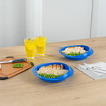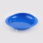 ROUND BLUE PLASTIC SCOOP PLATE - SPILLPROOF, WITH SUCTION BASE