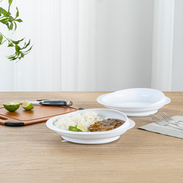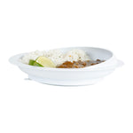 Ensure effortless dining with our Adapt Tek Adaptive Scoop Plate. This innovative one-handed eating plate features an anti-skid rubber suction bottom that firmly secures it during meals, minimizing spills and enhancing stability. The high-to-low rim design aids in scooping food onto utensils, making it a perfect solution for adaptive dining environments. Constructed from premium plastic, this deep-sided plate is both microwave and dishwasher safe, simplifying the cleaning and reheating process for busy kitchens. Its dimensions of 9.06 inches in diameter and 2.21 inches in height provide ample space for various dishes, while the neutral white color offers a high-contrast background for added food visibility. Designed to encourage independent eating, this plate is ideal for individuals with limited dexterity, such as the elderly or those adapting to self-feeding. Each order includes 1 Adapt Tek Adaptive Scoop Plate.