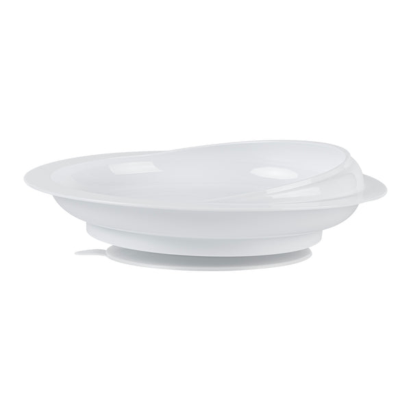 WHITE PLASTIC SCOOP PLATE - SPILLPROOF, WITH SUCTION BASE