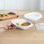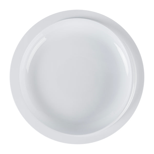 - Wide rim contoured lip aids one-handed eating