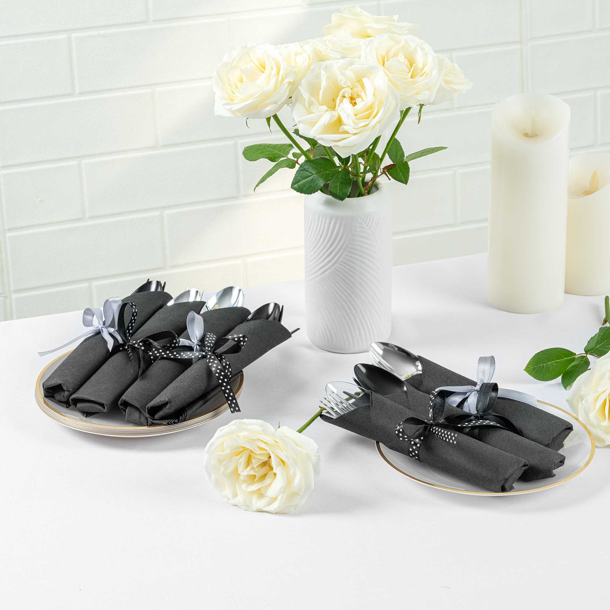 - Includes napkin and ribbon for upscale presentation