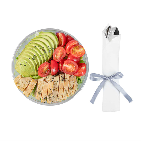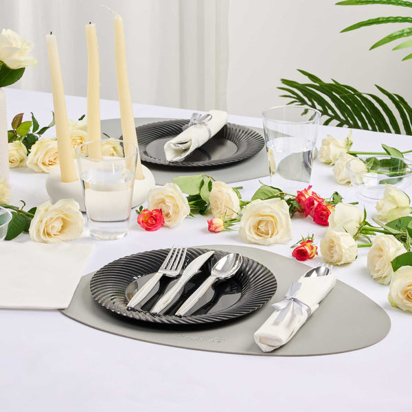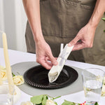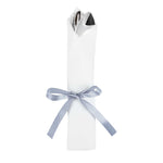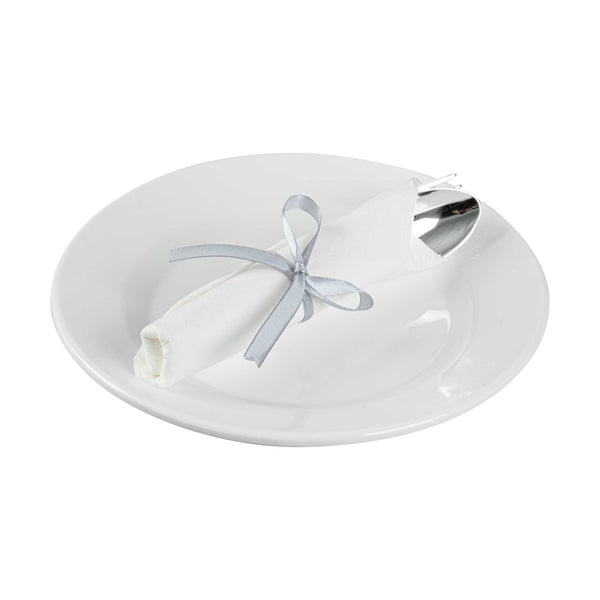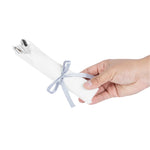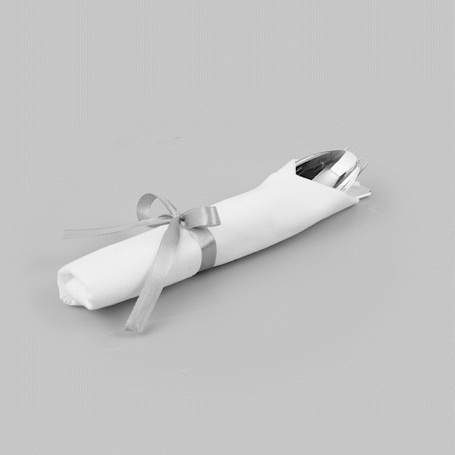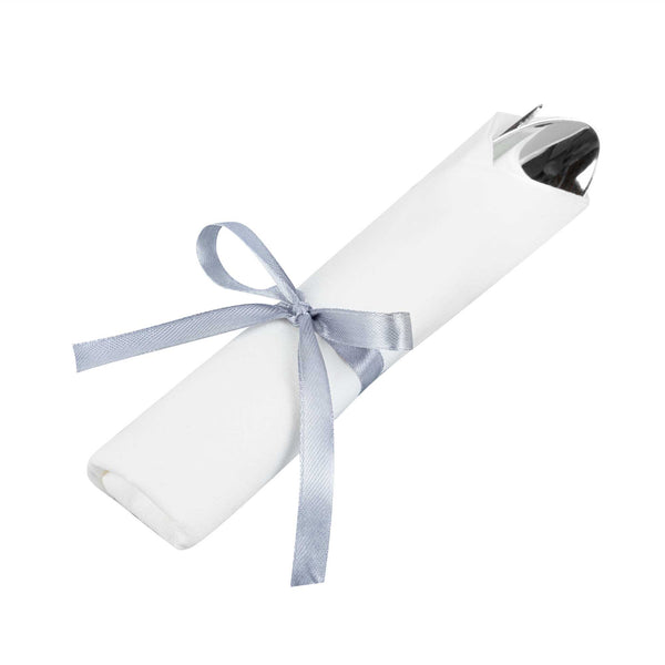 - Silver ribbon securely holds cutlery set while adding a charming look