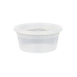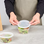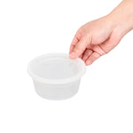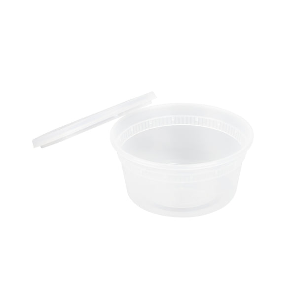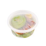 Seamlessly package soups or side dishes with our Asporto 12-ounce Round Clear Plastic Soup Containers. Made from BPA-free, heat-resistant plastic, these transparent soup containers are perfect for piping hot take out orders. These round food containers include a clear plastic lid that guarantees a secure seal, reducing the risk of spills during delivery. Further enhancing their convenience, these deli containers are microwave-safe, so your customers can heat their meals without the need to transfer them. With a 12-ounce capacity, these clear containers for take out offer ample space for your servings. These carry out containers not only offer the convenience of disposability but are also recyclable, providing your patrons with an eco-friendly option for disposal. The transparent construction of these take out boxes allows a clear view of the contents without unsealing. Each disposable to go boxes measures 4.5 inches in diameter by 2.5 inches in height and a capacity of 12 ounces. Sold in a 25 count box. NOTE: Lids are not for microwave use.