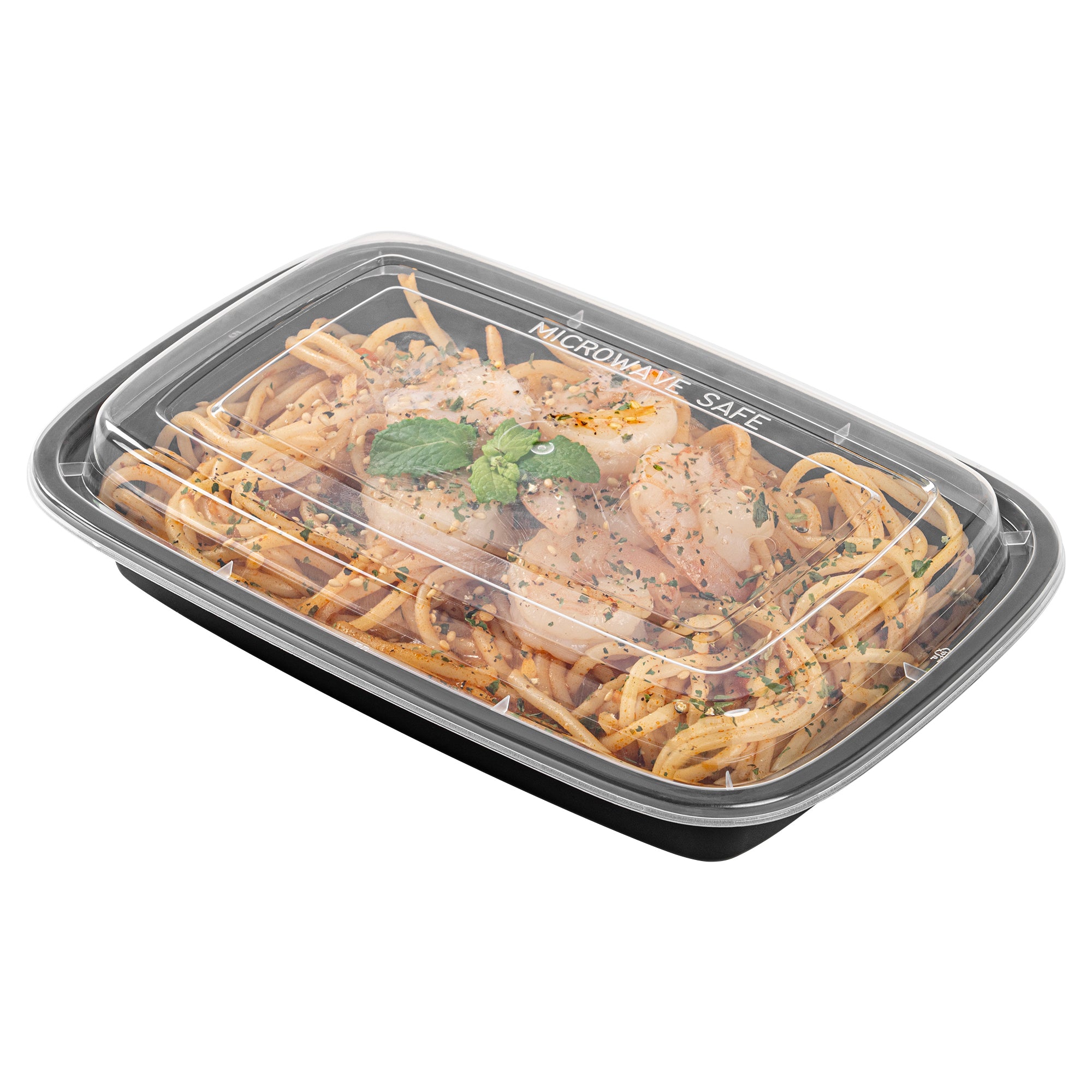 16 OZ RECTANGLE BLACK PLASTIC TO GO BOX - WITH CLEAR LID, MICROWAVABLE
