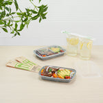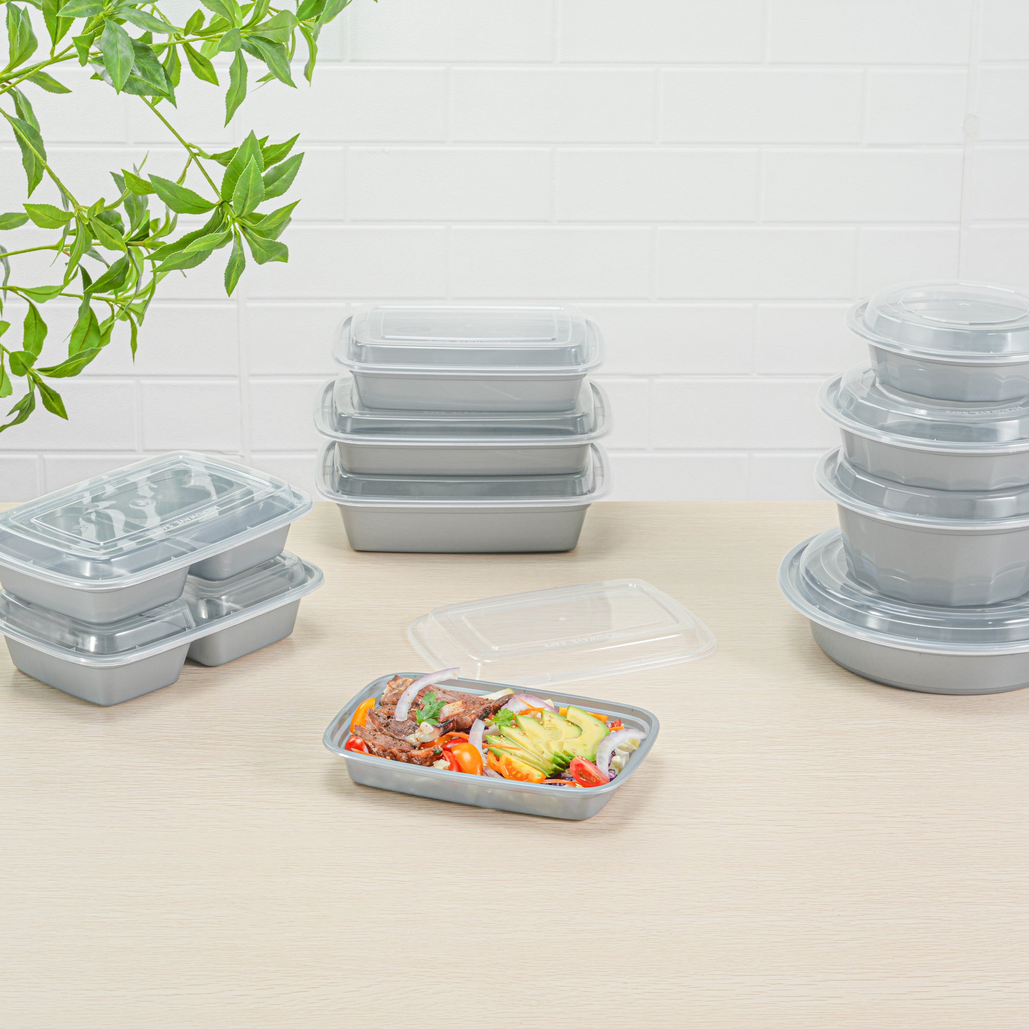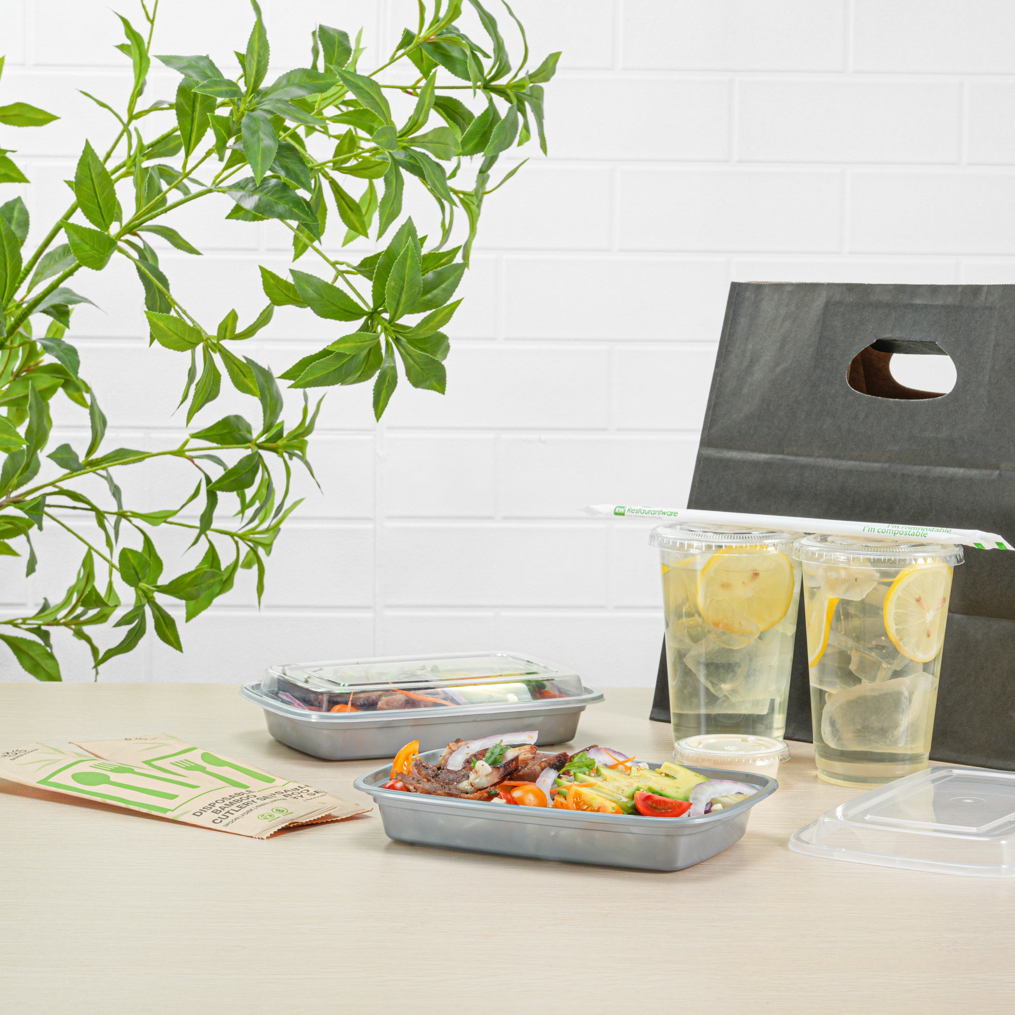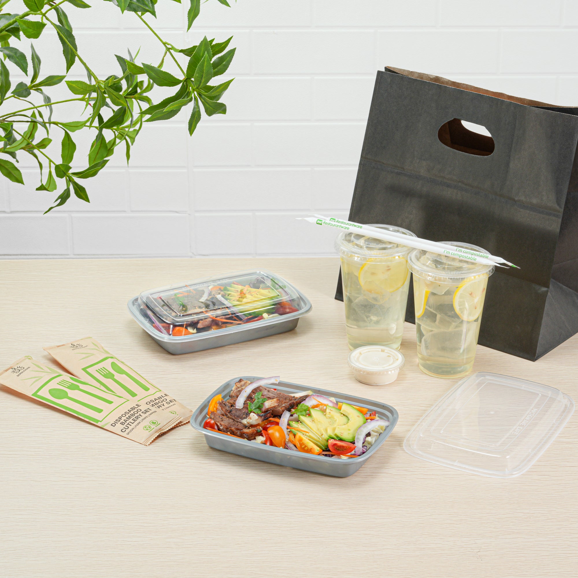 Enhance your food delivery service with our Asporto 16-ounce Rectangle Silver Plastic To Go Boxes. Featuring clear lids, these to go boxes form a tight-fitting seal to prevent spills and messes during transport. Designed to be microwave-safe, these meal prep containers conveniently heat food without switching to a different container. These takeaway boxes are made from BPA-free plastic and boast premium durability, ideal for packing various hot and cold food items. The sleek silver finish of these carry out containers accentuates the look of your take out and delivery orders. These disposable food containers can be discarded after use and facilitate an easy post-meal cleanup. Ideal for eco-conscious foodservice establishments, these to go containers are recyclable. Measuring 7.75 inches in length by 5.5 inches in width by 1.5 inches in height, these take out containers have a capacity of 16 ounces and offer ample space for your culinary creations. Sold in a 100 count box.