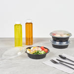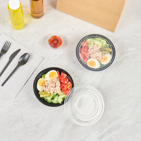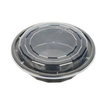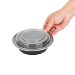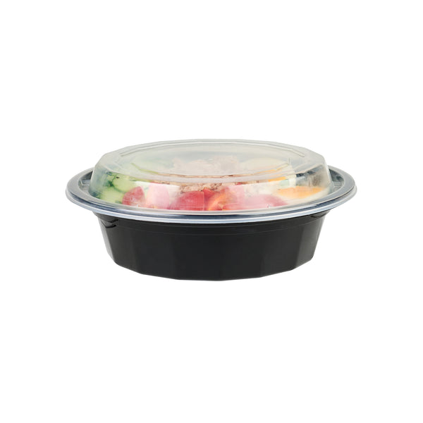 16 OZ ROUND BLACK PLASTIC TO GO BOX - WITH CLEAR LID, MICROWAVABLE