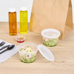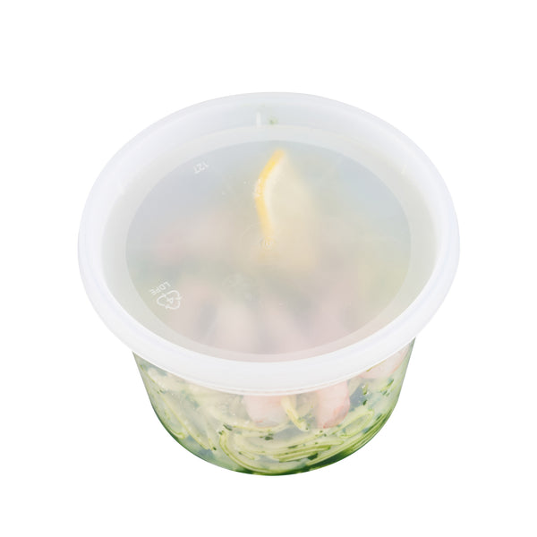 Effectively pack take out soups or snacks with our Asporto 16-ounce Round Clear Plastic Soup Containers. Crafted from BPA-free plastic, these round food containers are heat-resistant and perfect for packing various hot or cold delicious take out orders. These transparent soup containers are included with each container is a tight-fitting clear plastic lid that seals securely, preventing leaks during delivery. Microwave-safe, these clear containers for take outs allows users to easily warm up their meals. With a generous capacity of 16 ounces, these disposable to go boxes are perfect for a variety of meals. Recyclable and disposable, these carry out containers provide an environmentally responsible choice for your customers. With a clear finish, these plastic soup vessels easily reveal their contents. Measuring 4.5 inches in diameter by 3 inches in height, these clear food boxes have a capacity of 16 ounces. Sold in a 25 count box. NOTE: Lids are not for microwave use.