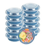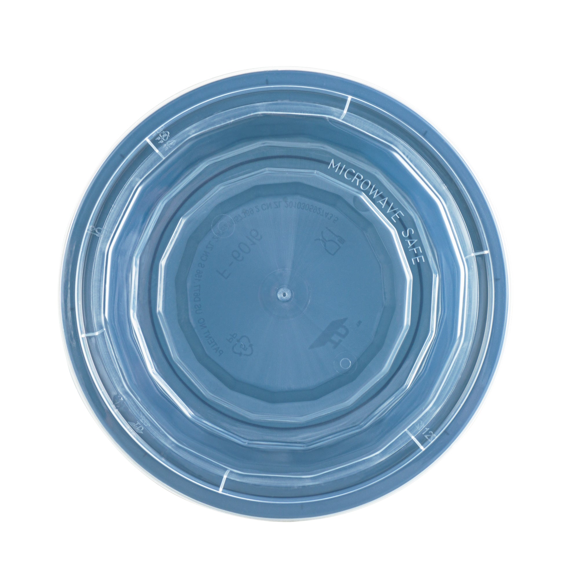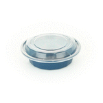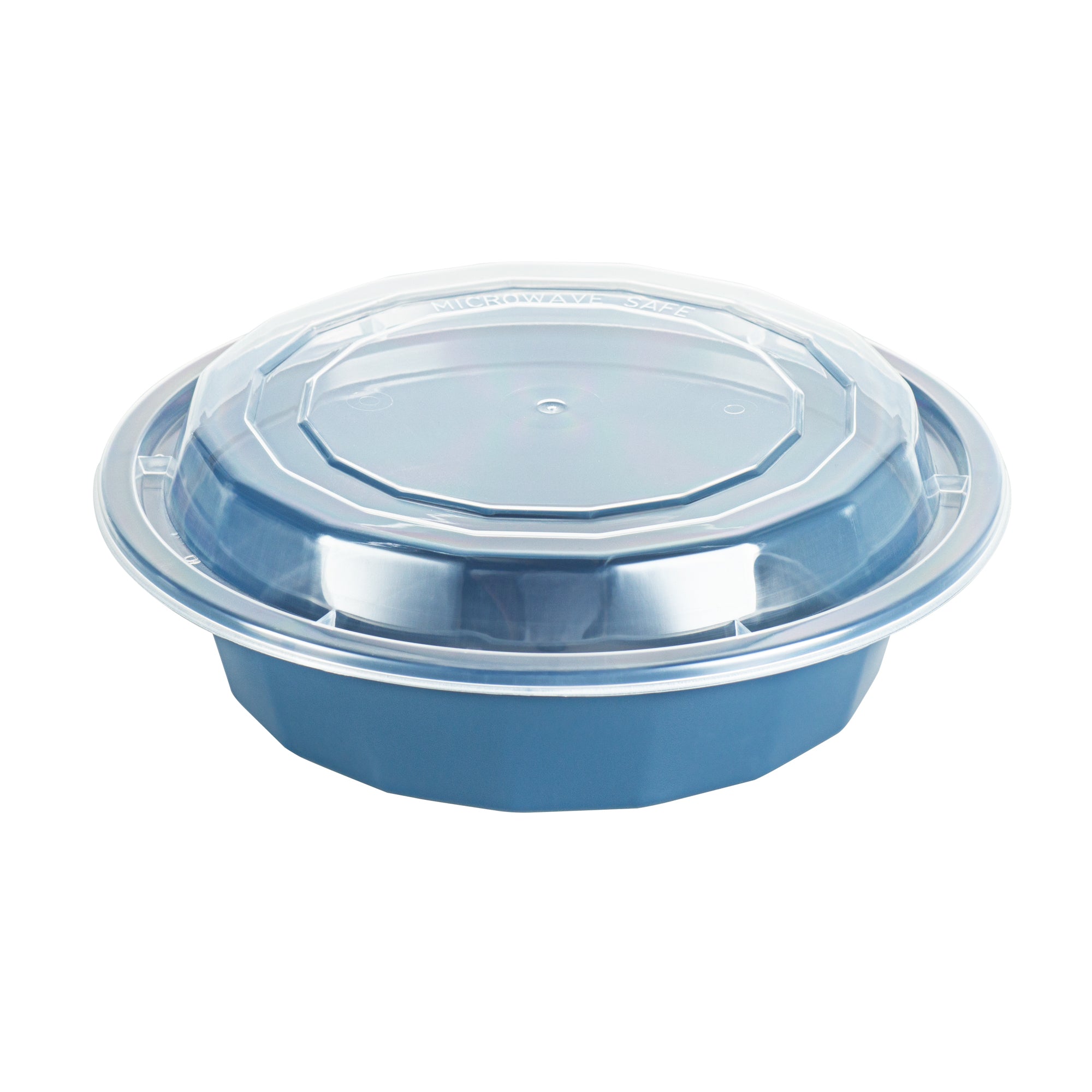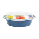 16 OZ ROUND BLUE PLASTIC TO GO BOX - WITH CLEAR LID, MICROWAVABLE
