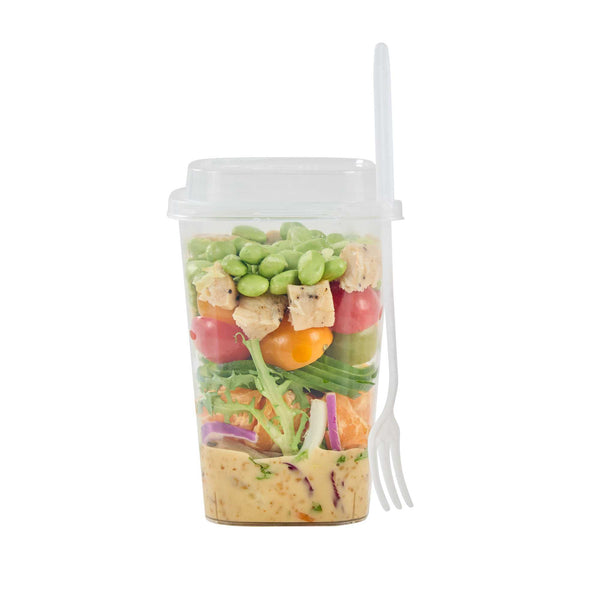24 OZ CLEAR PLASTIC SALAD TO GO CUP - LID AND FORK