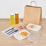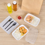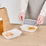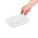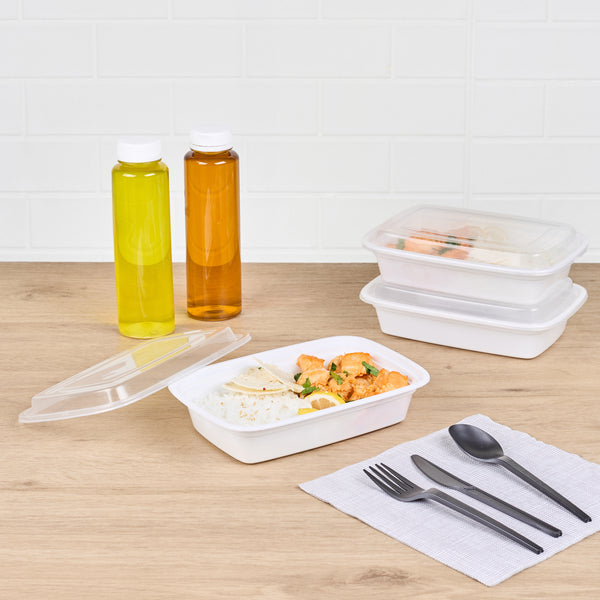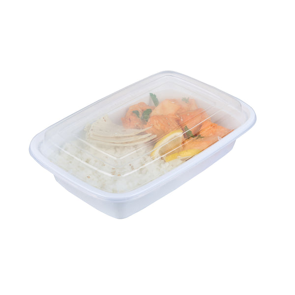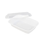 Pack your restaurant’s to go orders with our Asporto 24-ounce Rectangle White Plastic To Go Boxes. These take out containers come equipped with clear lids and form a tight seal to prevent spills in transit. Designed to be microwave-safe, these carry out containers allow you to reheat your meals without the need to transfer the contents to a different container. Made from BPA-free plastic, these meal prep containers are suitable for packing a wide range of hot and cold food items. These to go boxes feature an elegant white finish and visually enhance your food presentation. To facilitate an easy cleanup, these disposable take out boxes can be easily discarded after use. These to go containers are recyclable and ideal for showcasing your sustainable practices to your patrons. Measuring 8 inches in length by 5.25 inches in width by 1.75 inches in height, these takeaway boxes can hold up to 24 ounces. Sold in a 100 count box.