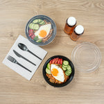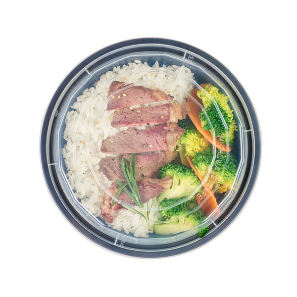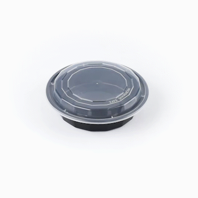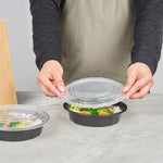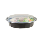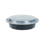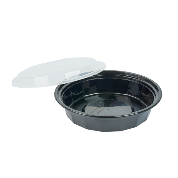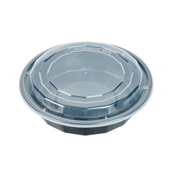 24 OZ ROUND BLACK PLASTIC TO GO BOX - WITH CLEAR LID, MICROWAVABLE