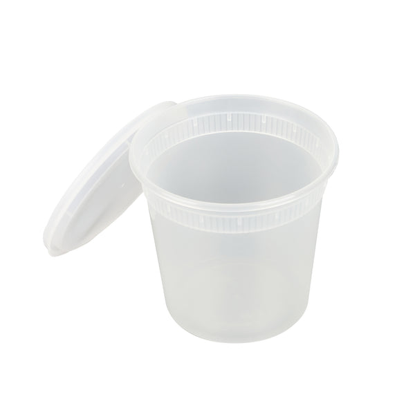24 OZ ROUND CLEAR PLASTIC SOUP CONTAINER - WITH LID, MICROWAVABLE