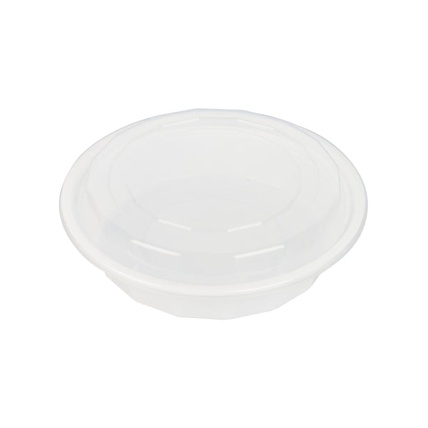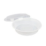 24 OZ ROUND WHITE PLASTIC TO GO BOX - WITH CLEAR LID, MICROWAVABLE