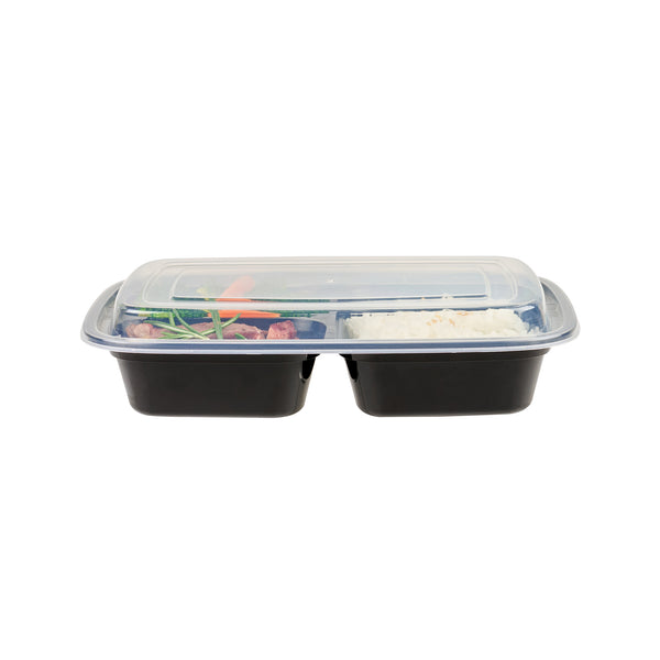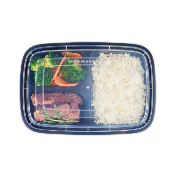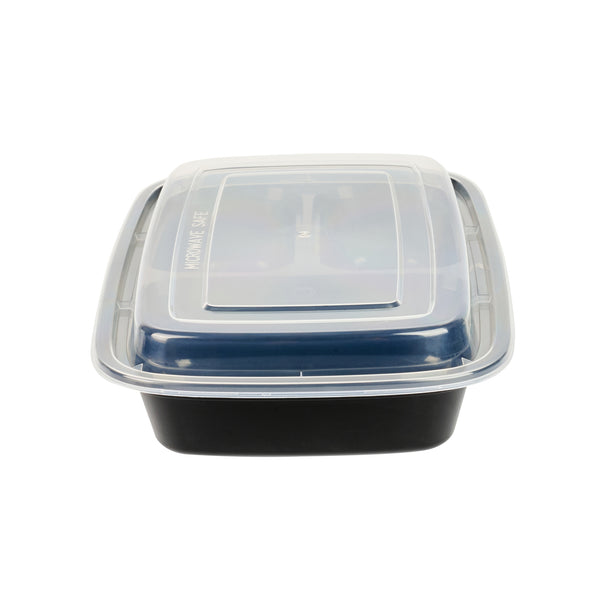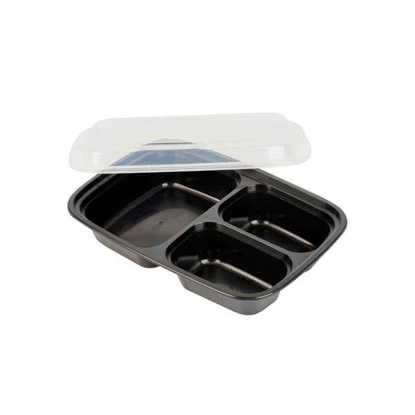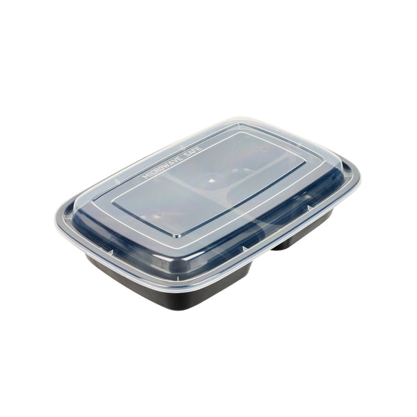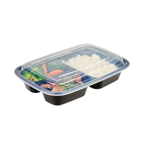 26 OZ PLASTIC 3 COMPARTMENT FOOD CONTAINER - WITH LID, MICROWAVABLE