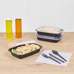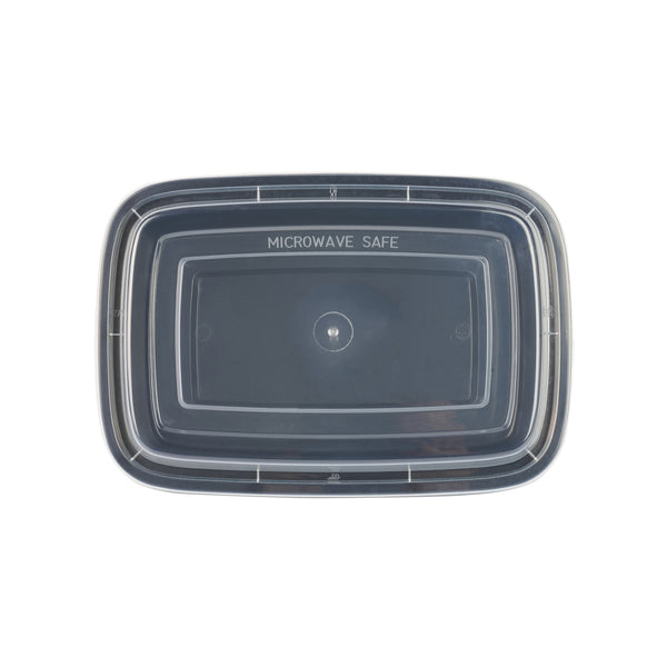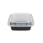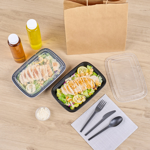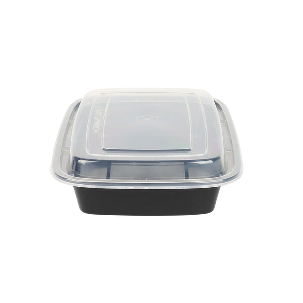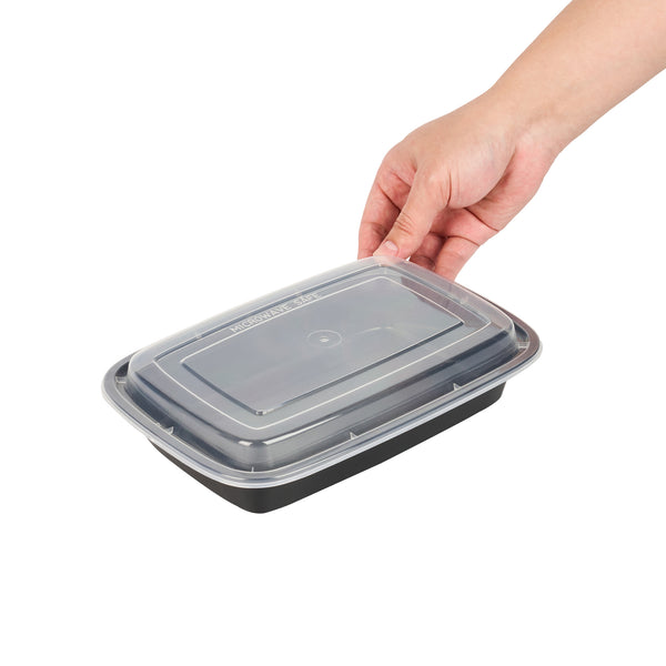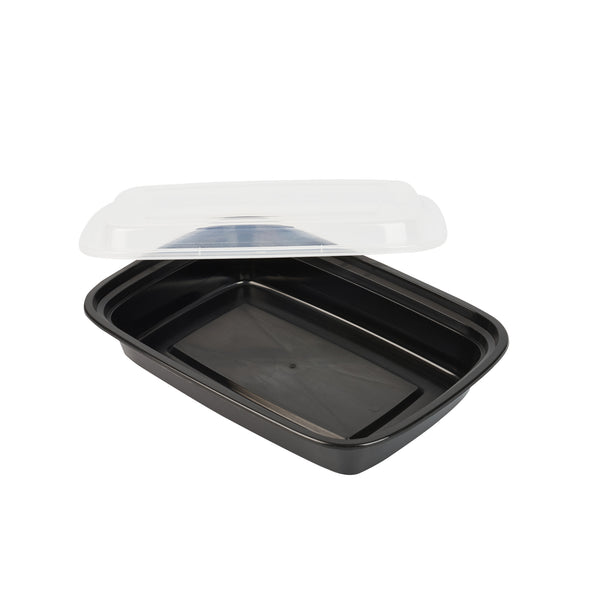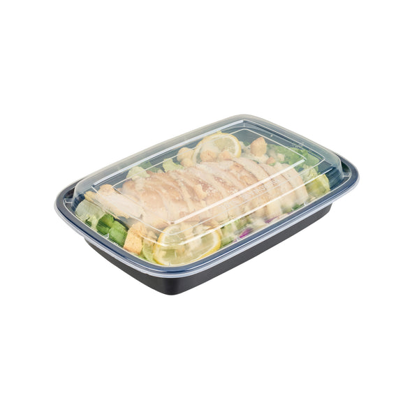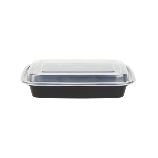 28 OZ RECTANGLE BLACK PLASTIC TO GO BOX - WITH CLEAR LID, MICROWAVABLE