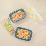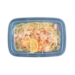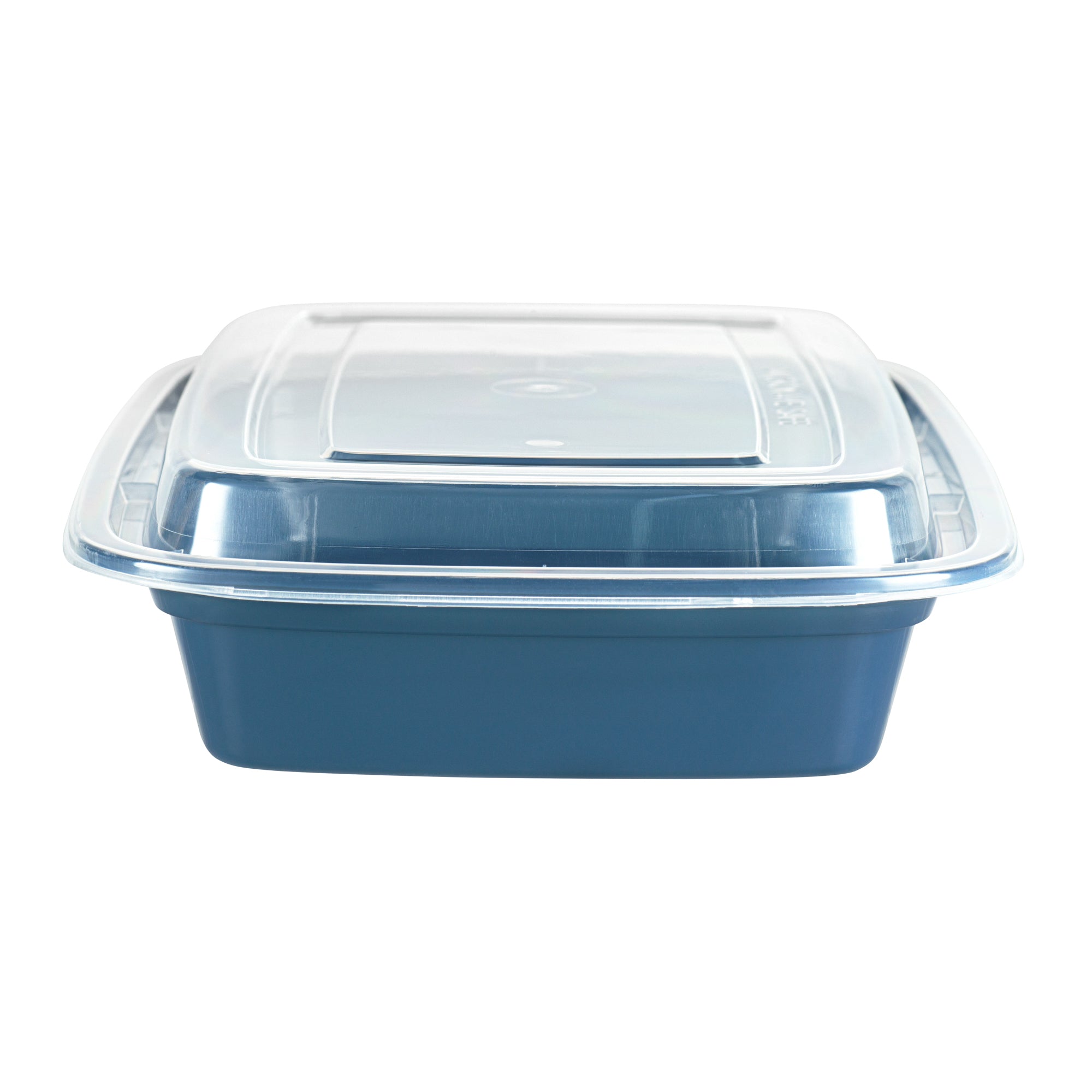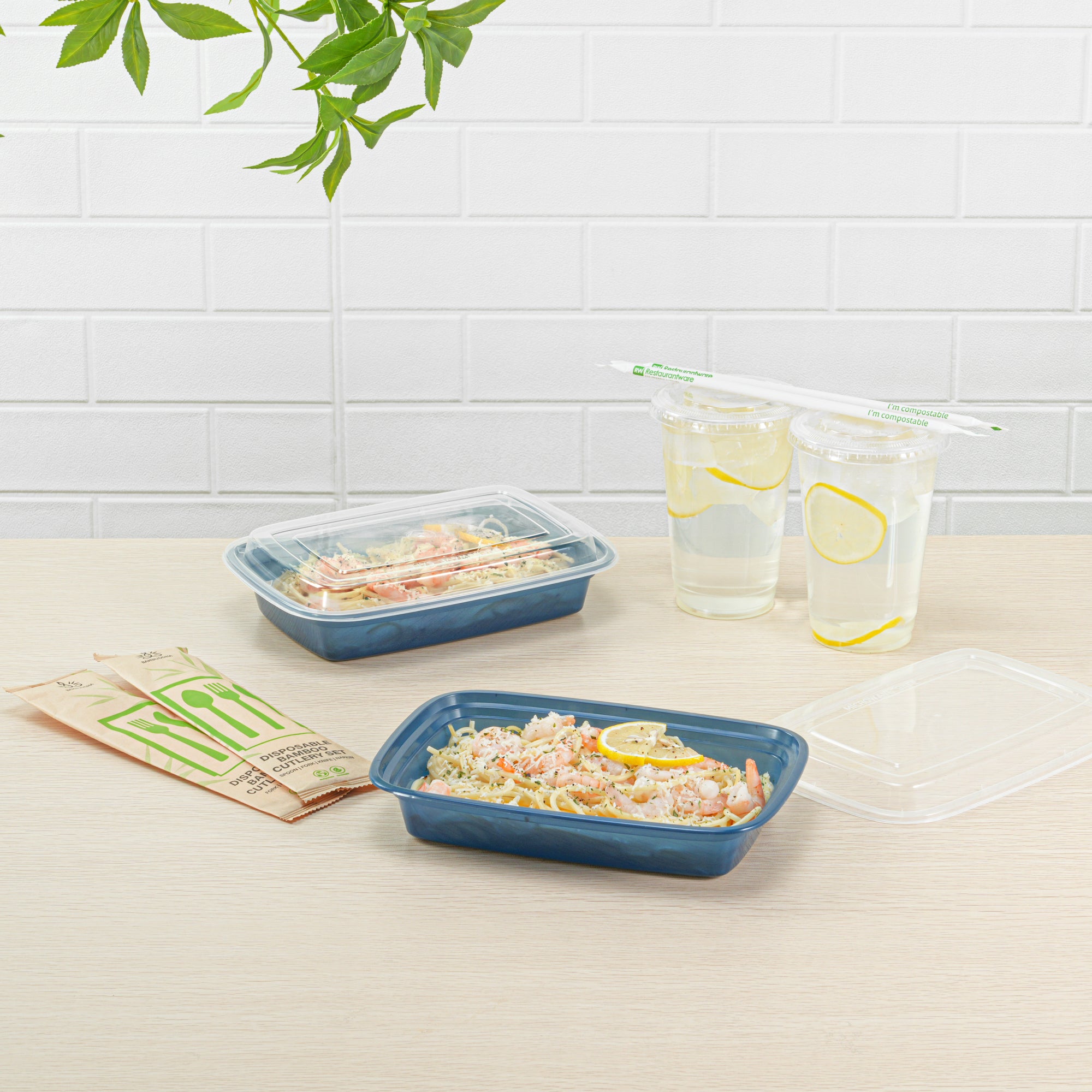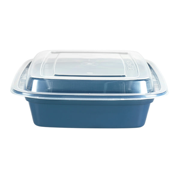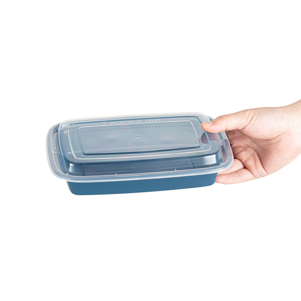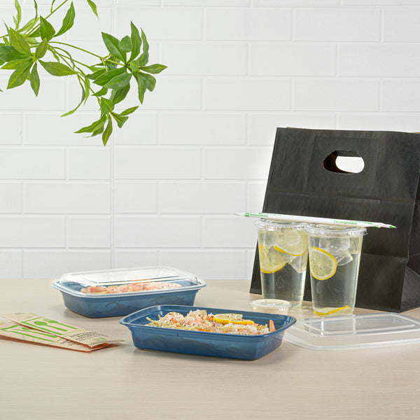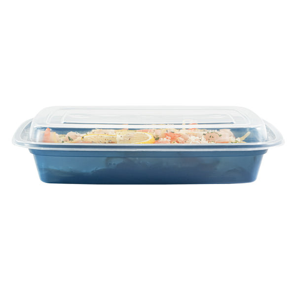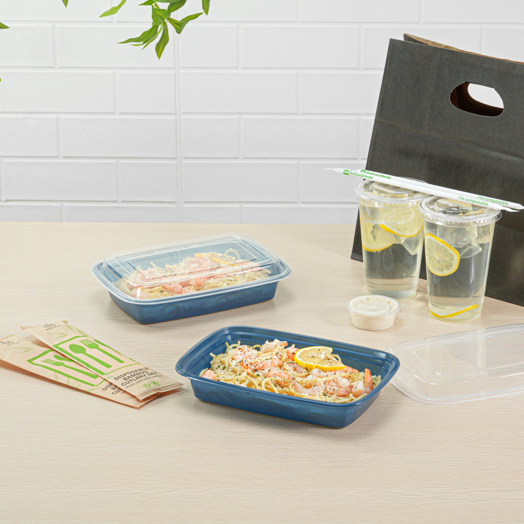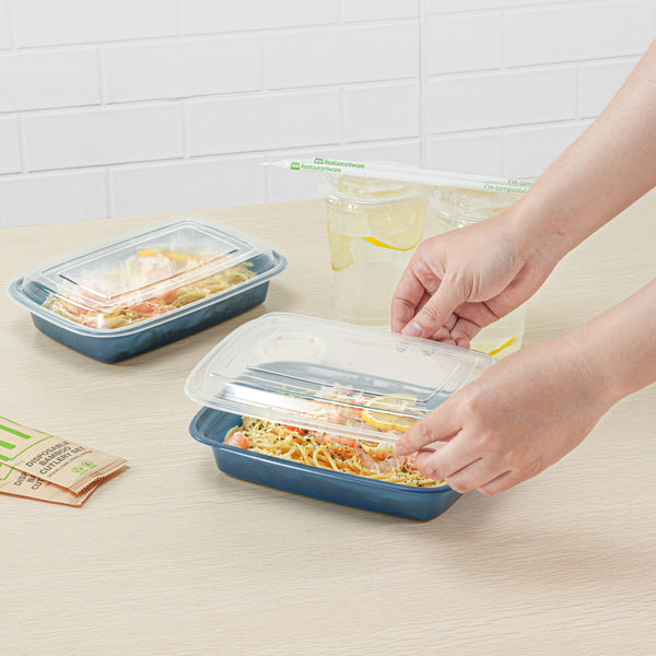 Make every meal memorable with our Asporto 28-ounce Rectangle Midnight Blue Plastic To Go Boxes. To offer an ideal take out solution, these carry out containers come equipped with clear plastic lids and form a tight seal that prevents spills in transit. These meal prep containers are microwave-safe and allow you to reheat your meals without transferring them to a different container. Crafted from BPA-free plastic, these takeaway boxes are suitable for packing various types of hot and cold food items. The midnight blue finish of these to go boxes creates a stylish look for your food presentation. These take out containers are disposable and can be easily discarded after use, facilitating an easy cleanup. Ideal for environmentally-friendly foodservice establishments, these disposable food containers are recyclable. Measuring 8.75 inches in length by 6 inches in width by 1.5 inches in height, these takeaway containers can hold up to 28 ounces and offer ample space for packing your culinary creations. Sold in a 100 count box.